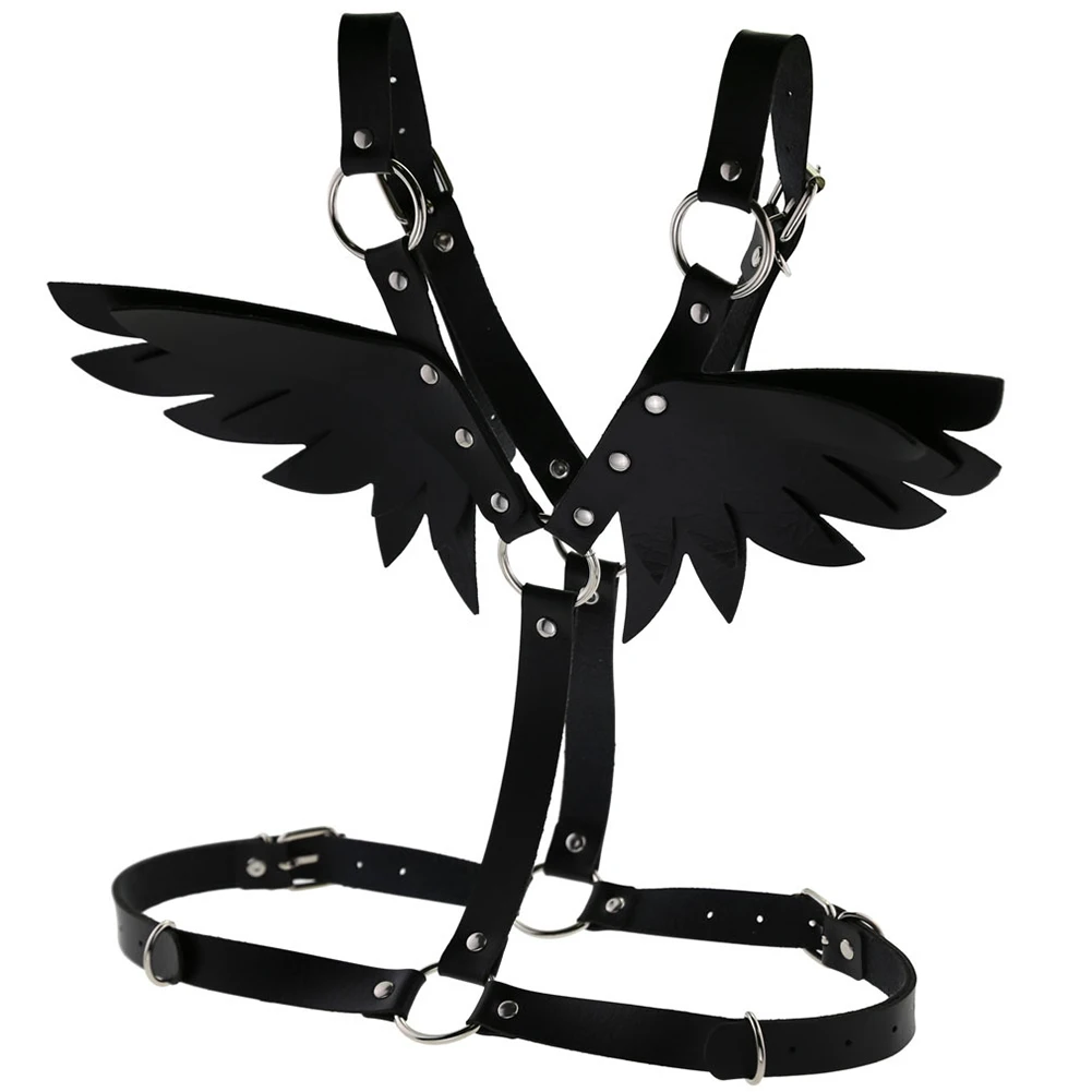 Пляжный ошейник из искусственной кожи, с крыльями ангела, регулируемый, в готическом стиле