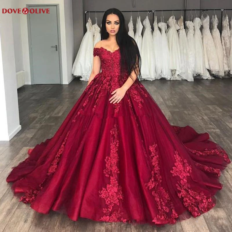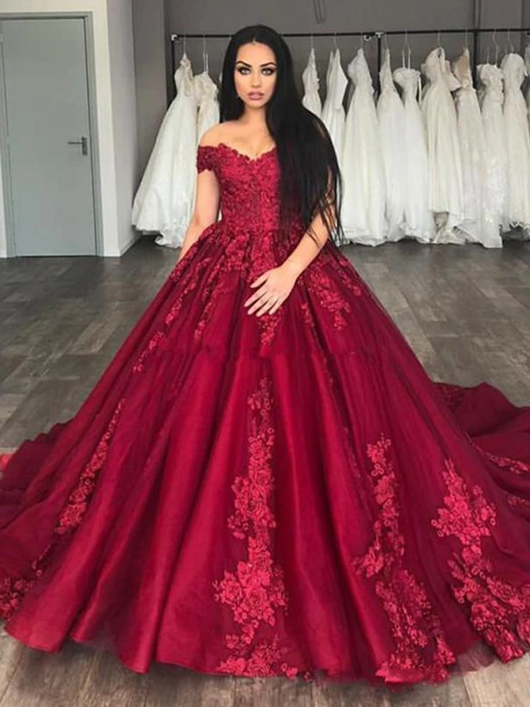 Великолепное бальное платье, платья для Quinceanera, платья с открытыми плечами, кружевной аппликацией, тюлевые платья для выпускного вечера, темно-красные милые платья 16 дюймов