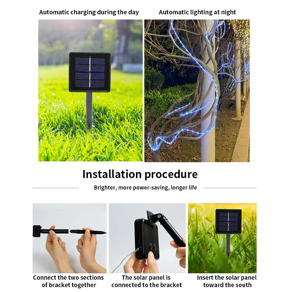 Светодиодная наружная Солнечная лампа, 50100 светодиодов, водонепроницаемый Солнечный шланг, гирлянда, рождественские праздничные вечерние украшения для сада