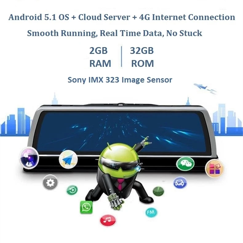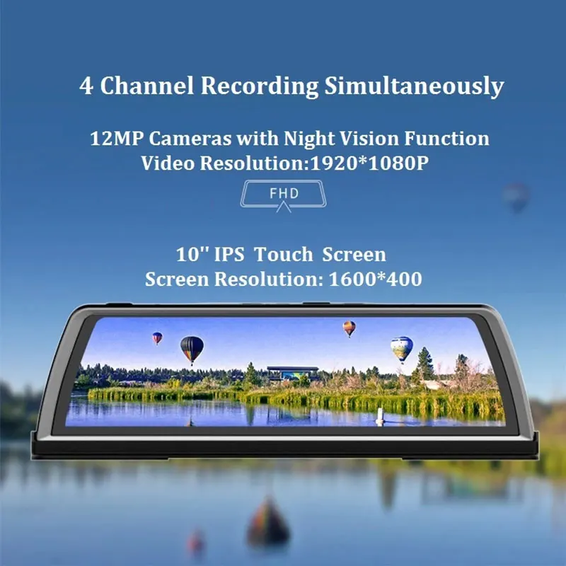 Основные характеристики: > Smoothy 4-х ядерный эксплуатации: MTK6735 1,3 ГГц Cortex-A53, графического процессора Mali-T720MP3, 450 МГц, 22,9 Gflops; Высокая скорость работы, легко управлять несколькими задачами > Поставляется с объективом 4CH для безопасной парковки. Запись фронтальной и задней камеры одновременно. Камера с правой и левой глубиной для отображения изображения для безопасной парковки. Фронтальная камера 1080P, а задняя камера 720P для записи видео; Правая и левая камера 720P для отображения изображения. > Все это зеркало IPS экран 10 дюймов. На дисплее используются новые технологии и технологии, чтобы точно следовать изгибам дизайна, вплоть до элегантных закругленных углов, для того, чтобы обеспечить 100% просмотр изображения будет отображаться в этом 10 дюймов Полностью зеркальная поверхность экрана. > Тройное широкое зеркало заднего вида по технологии потокового видео. Он оснащен этой передовой технологией потоковой передачи данных С задней камерой 1080P, что делает вождение заднего вида более широким, это тройной широкий вид, если сравнить с традиционным зеркалом > 4G модуль для sim-карты (Интернет) + WIFI модуль маршрутизатор = серфинг быстрее Благодаря sim-карте 4G и встроенному Wi-Fi, независимо от того, где вы едете, вы будете наслаждаться удовольствием от интернет-серфинга, что делает его возможным для онлайн-навигации/музыки/кино и т. Д. > Автопомощь мобильное приложение + Интернет-серфинг = удаленный монитор Благодаря нашему уникальному мобильному приложению удаленного монитора «Car Assist» и подключению к Интернету, вы можете дистанционно контролировать свой путь вождения автомобиля и то, что произошло вокруг вашего автомобиля, независимо от того, где вы находитесь. > ADAS Plus делает вождение более безопасным Усовершенствованные системы сигнализации вождения (LDWS/ FCWS/FVMA) , это полезные системы сигнализации, чтобы сохранить безопасность вашего вождения.