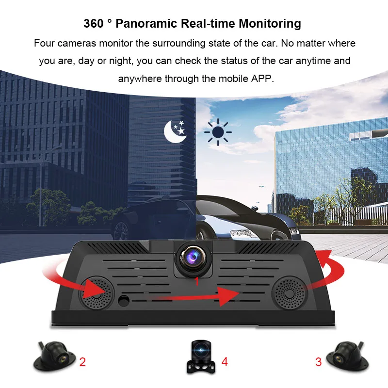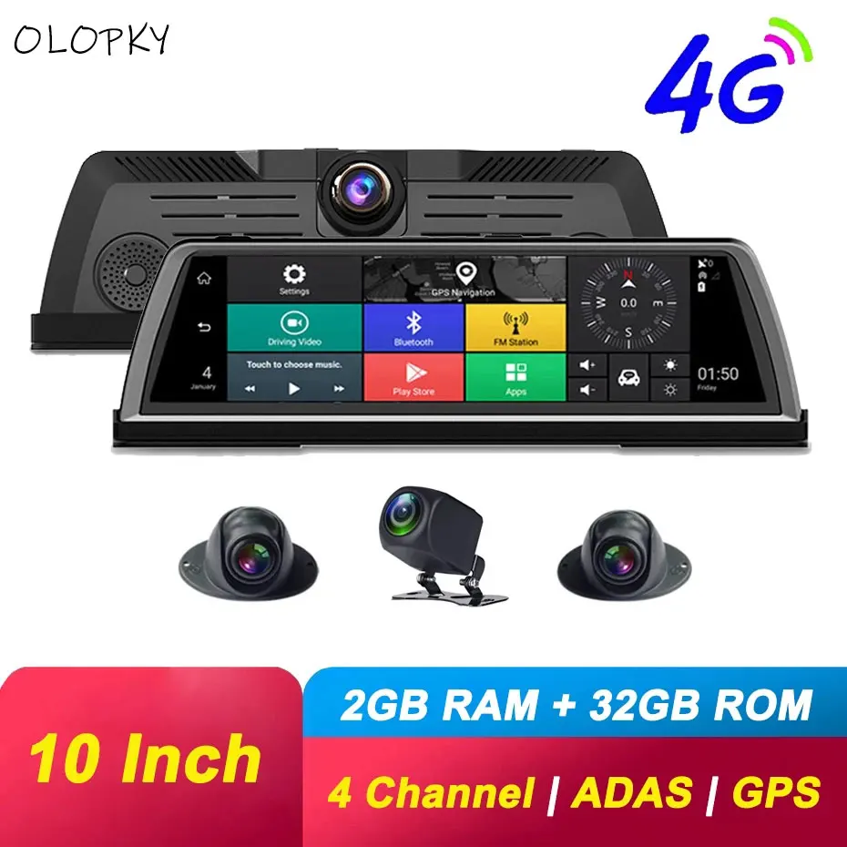 Автомобильный видеорегистратор, 4 линзы, 360 дюйма, 4 ядра, 4G, 10 дюймов