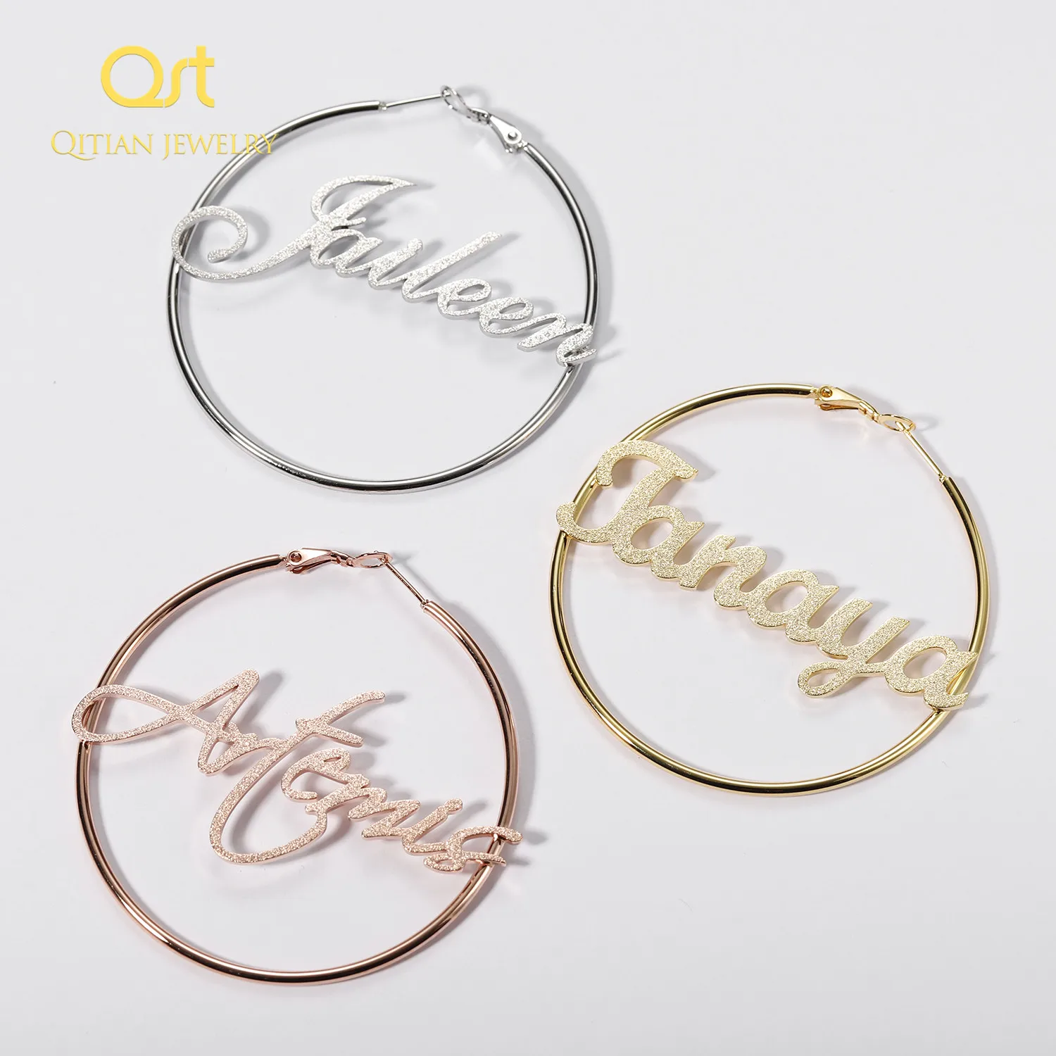 Индивидуальные большие серьги из пескоструйной обработки, индивидуальные матовые Серьги-Обручи из нержавеющей стали для женщин, бижутерия с табличкой, подарки для девушек