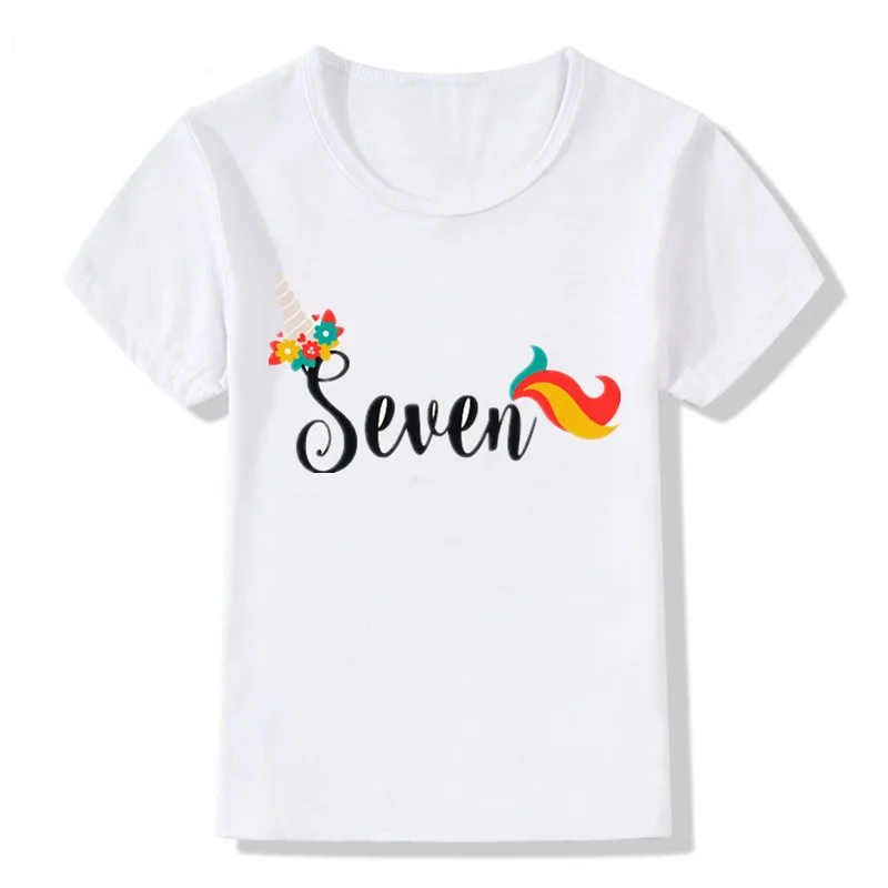 Футболка для девочек на день рождения с изображением единорога, цифры 1-9, забавная, с милым принтом для детей 1,2,4,6,8,10,12 лет