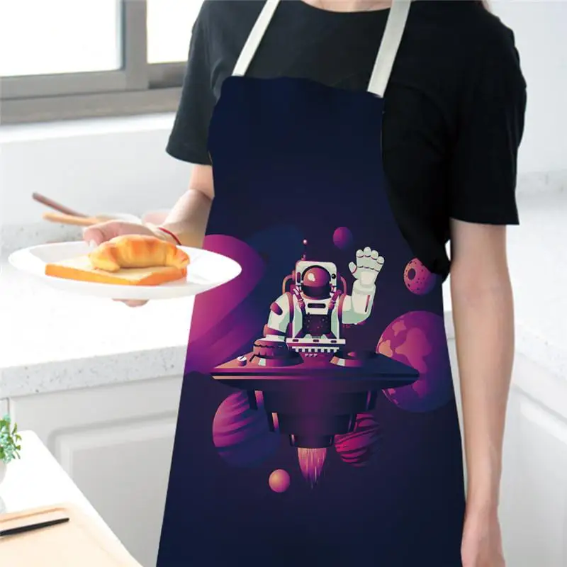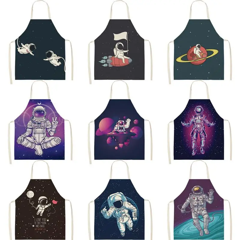 Слюнявчик из хлопка и льна с принтом космоса, Легкая очистка, астронавт, девушки и мужчины, Женский фартук, мужские фартуки, приблизительно WQ151