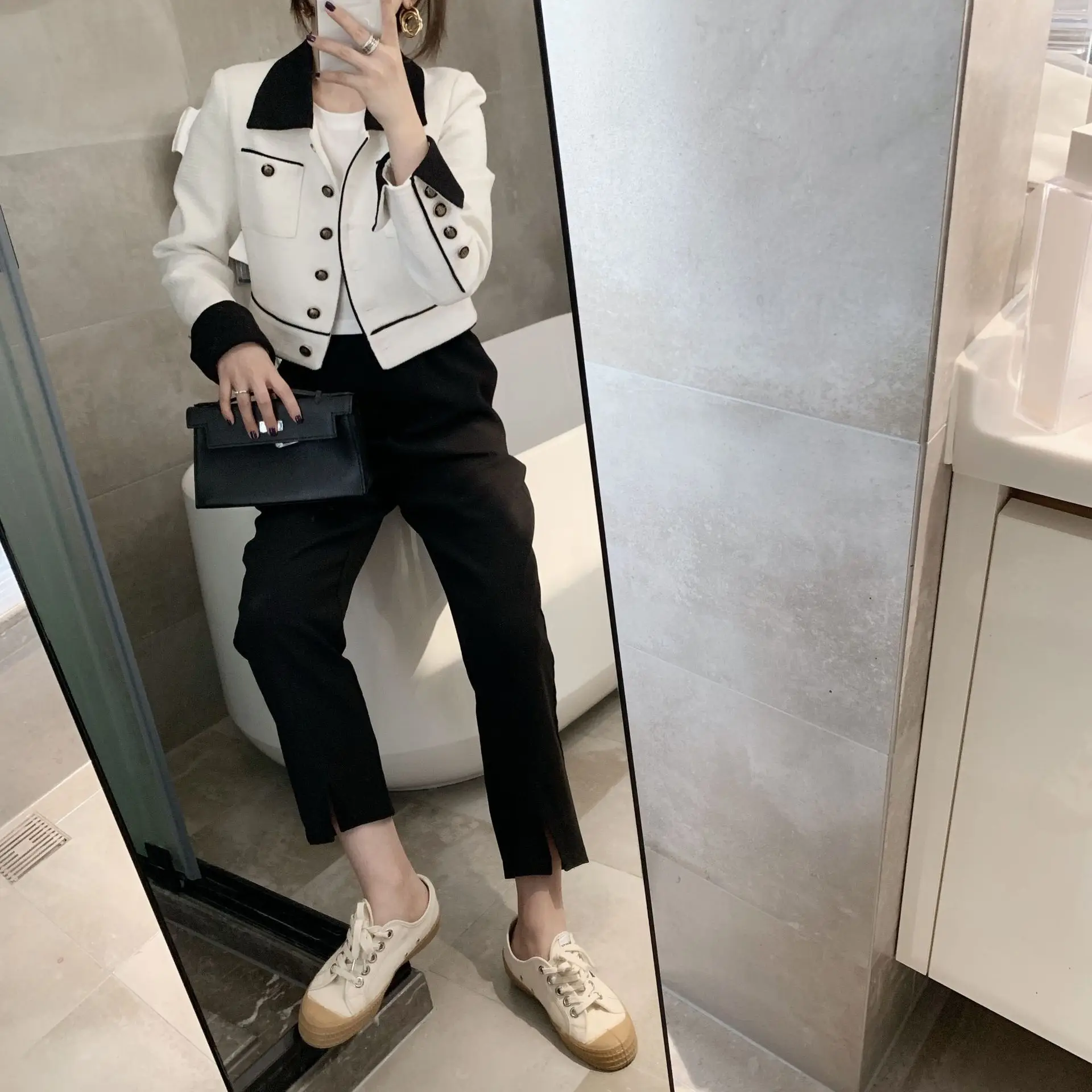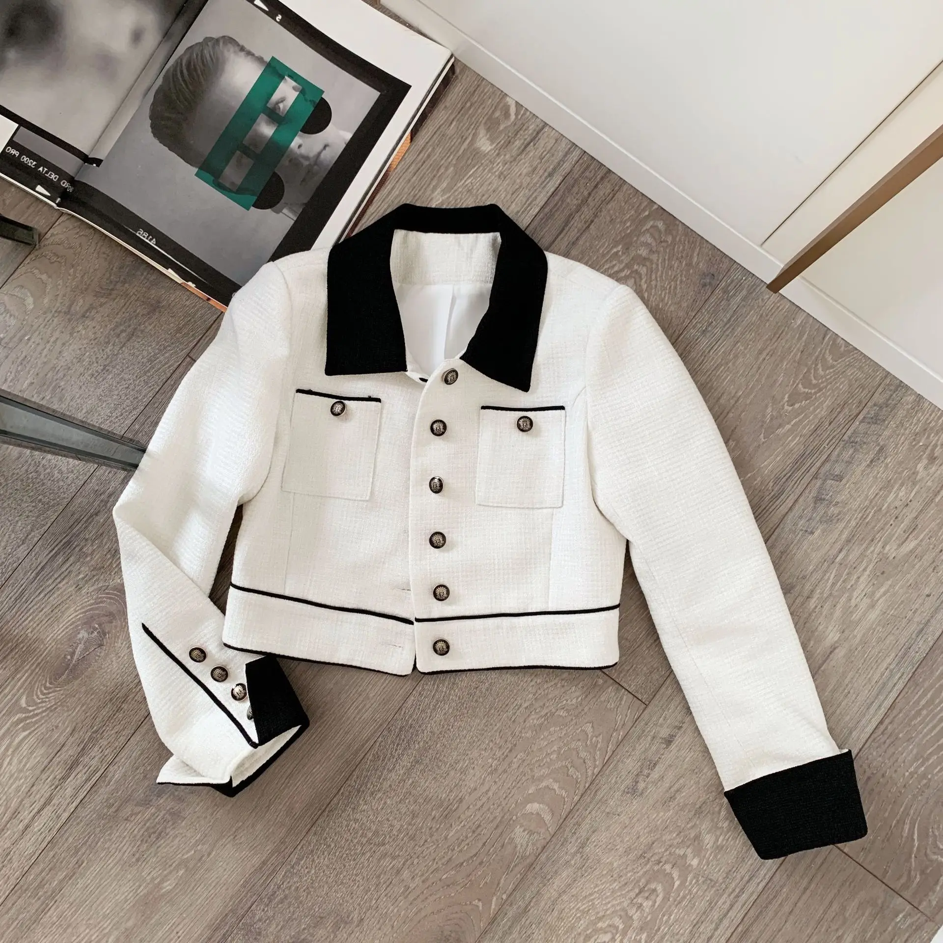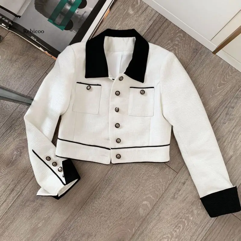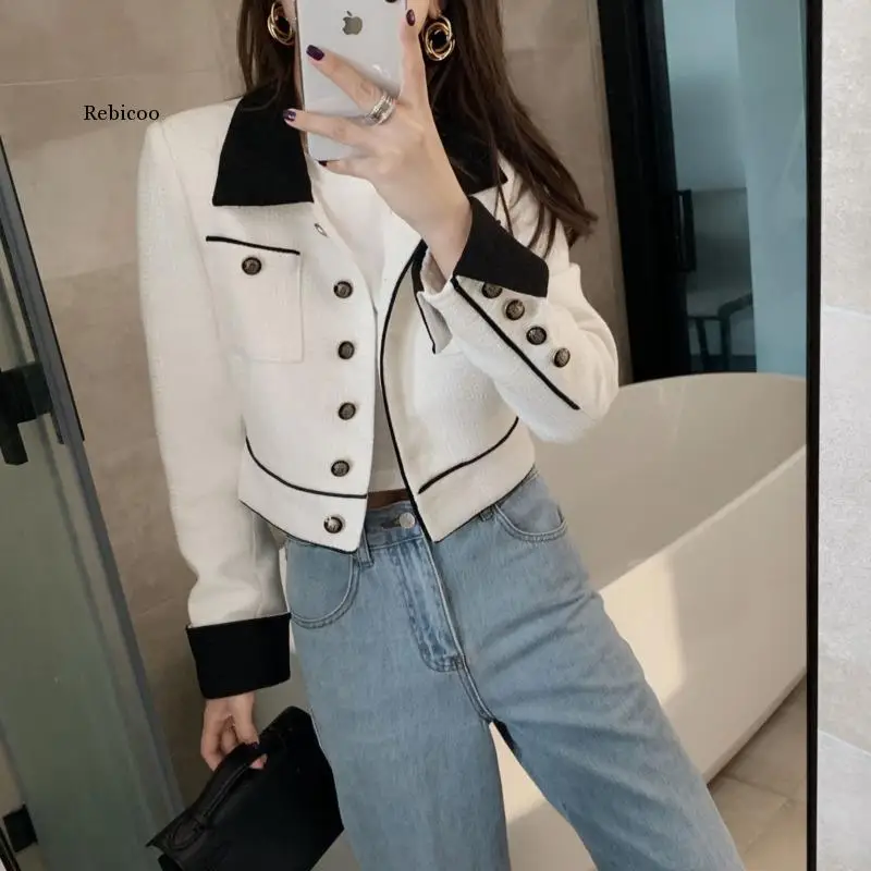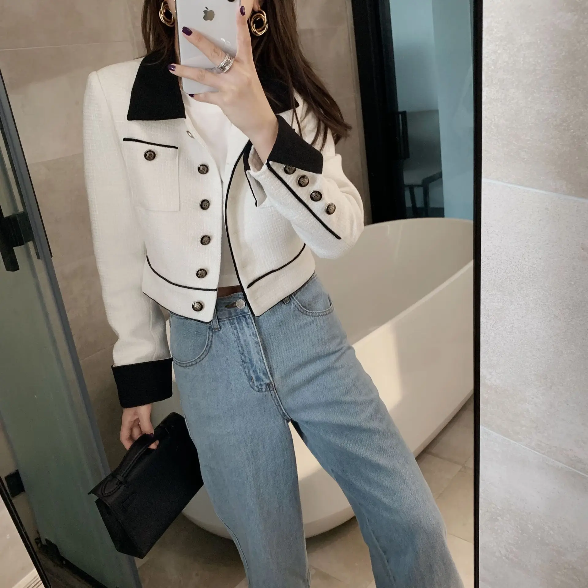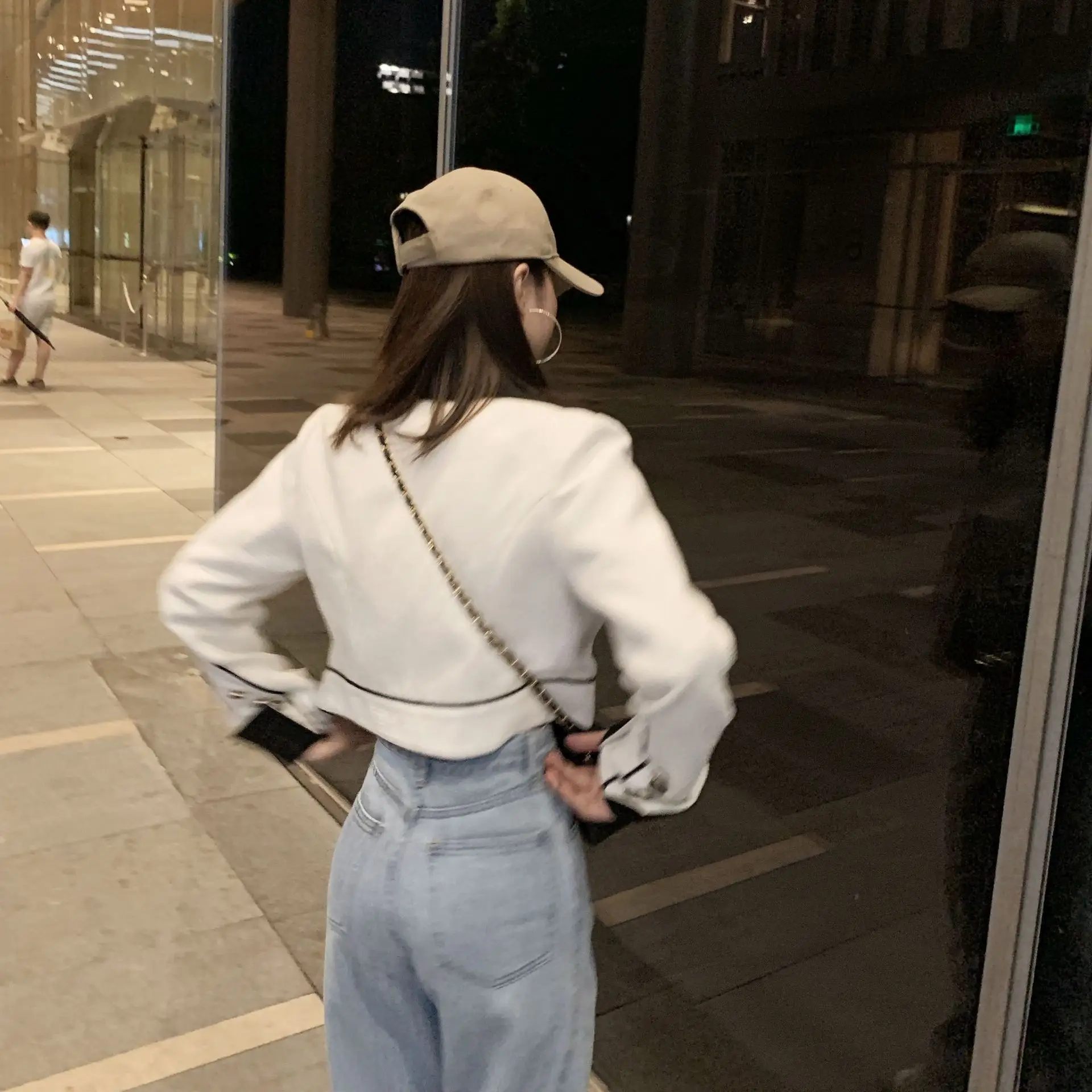 Осенняя женская модная повседневная короткая приталенная куртка, подходящий жакет белого цвета