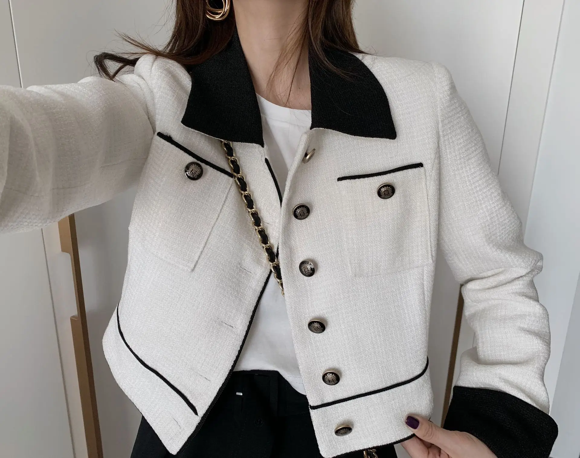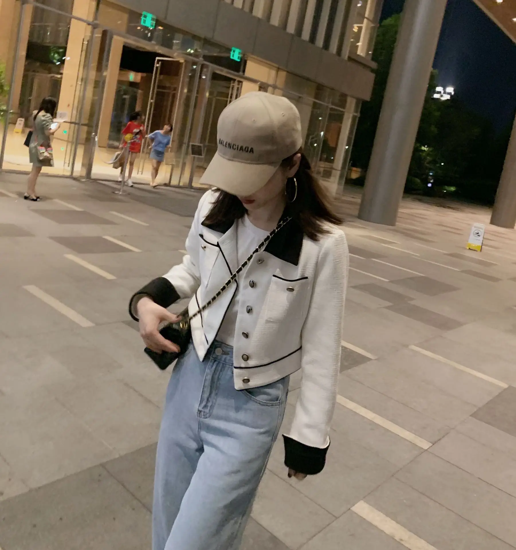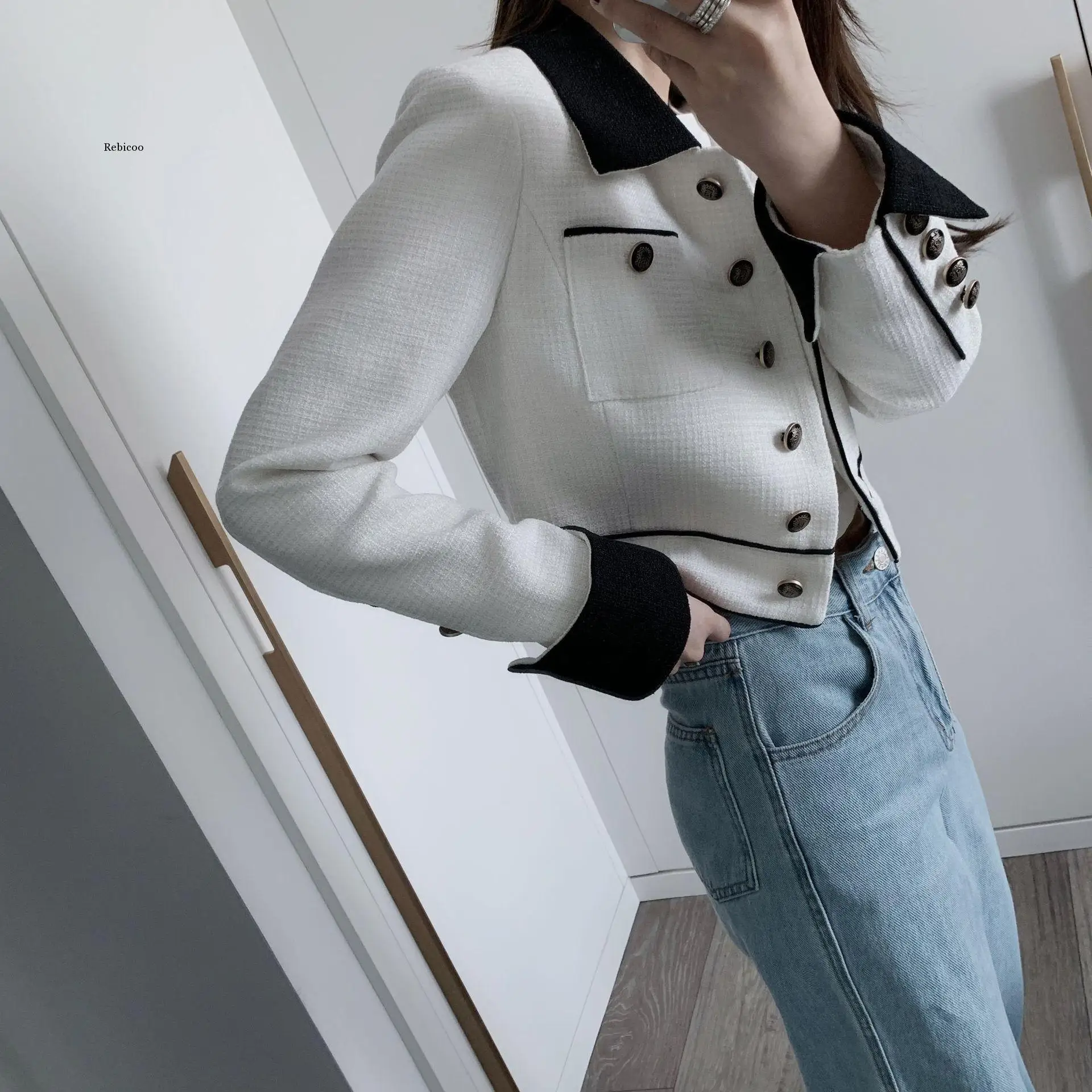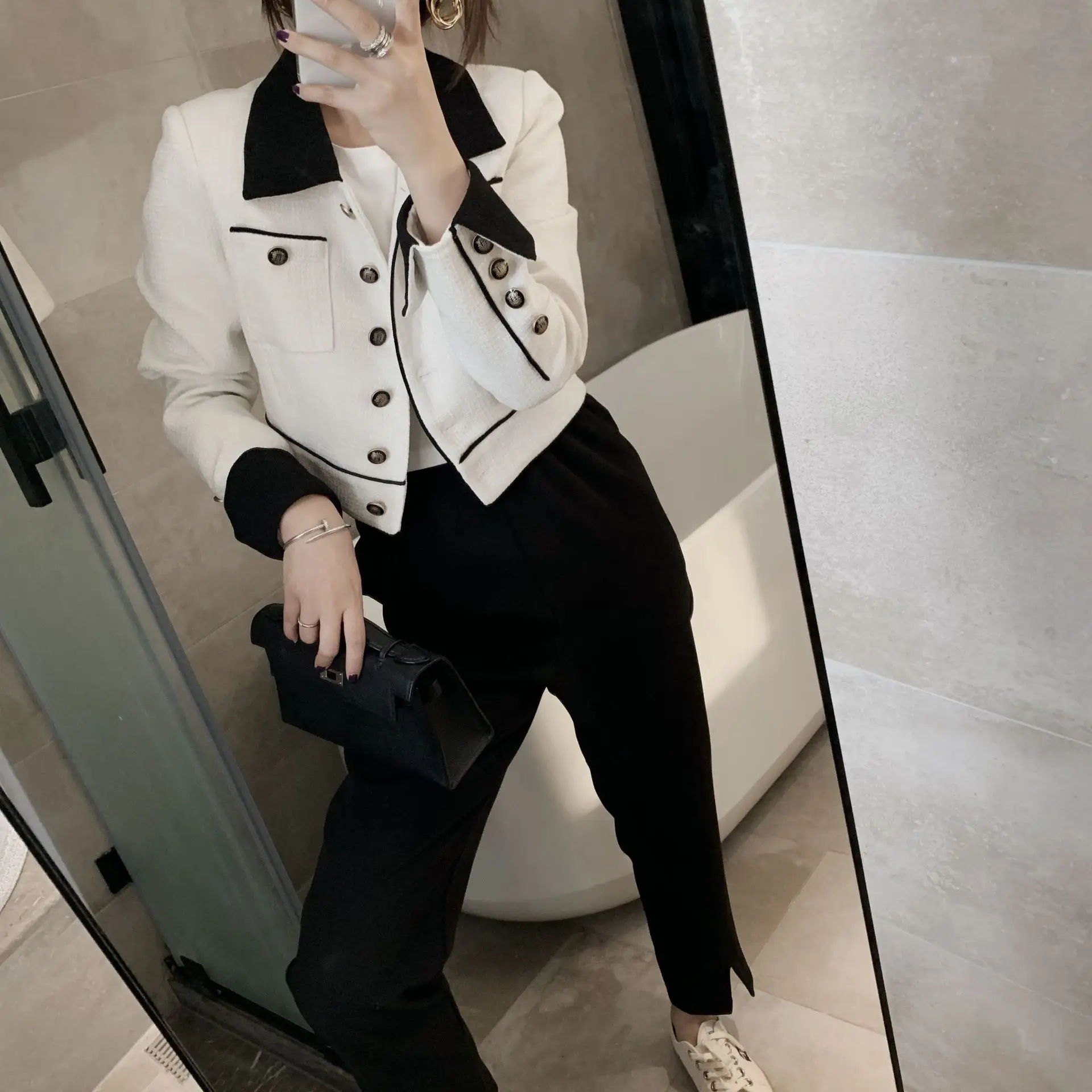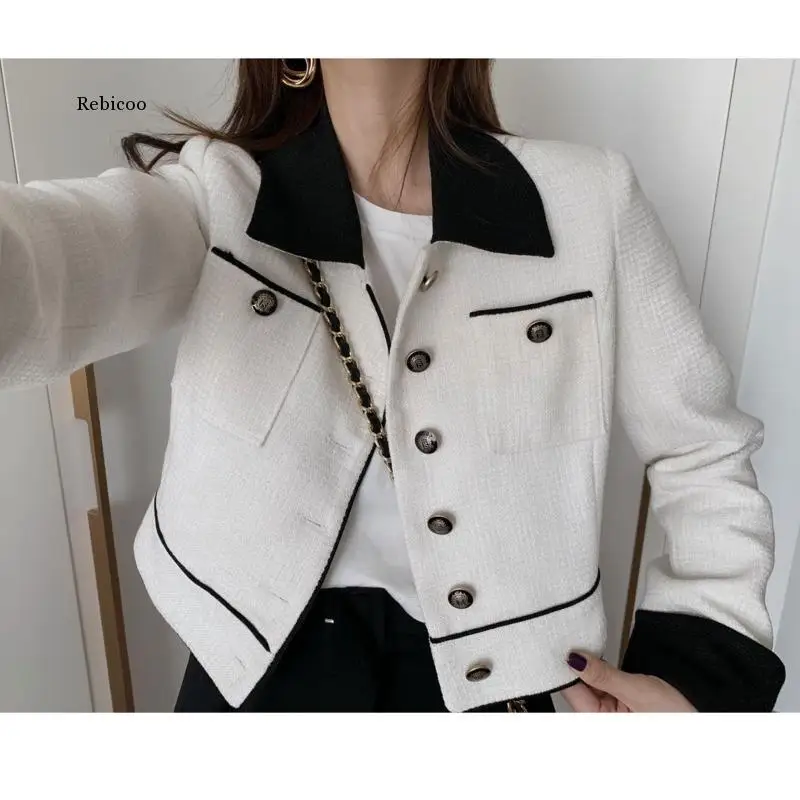 Осенняя женская модная повседневная короткая приталенная куртка, подходящий жакет белого цвета