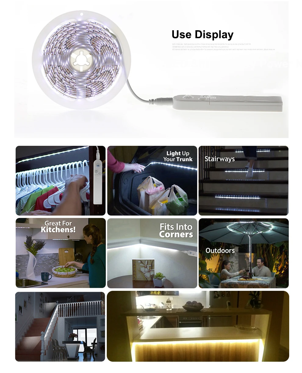 Светодиодные светильники с пассивным ИК датчиком движения для кухни, Светодиодная лента с USB и датчиком автоматического включениявыключения, освещение для лестницы, гардероба, чулана, спальни, ночник для безопасности