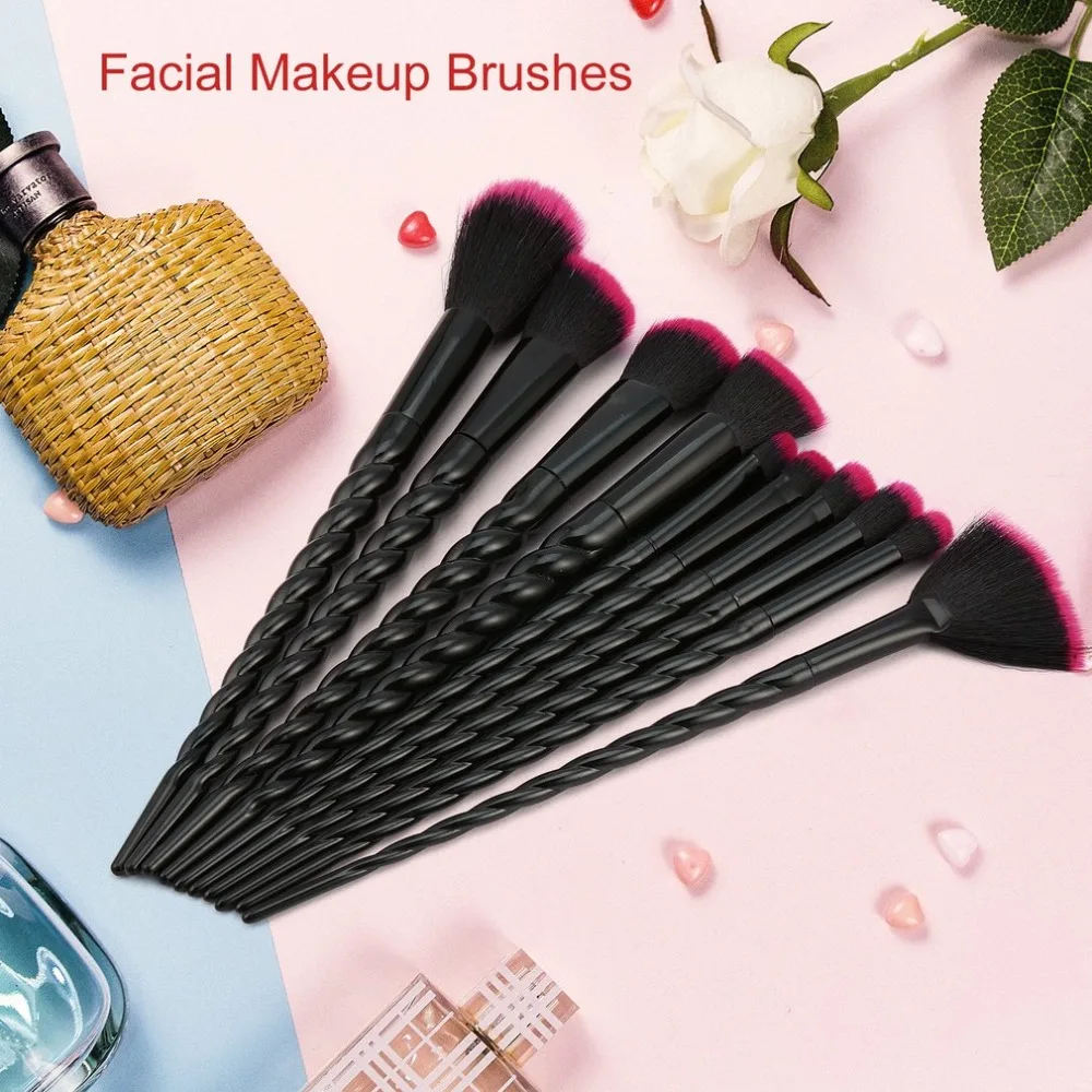 Красный 10 шт набор кисточек для макияжа с ручкой в форме рога един...