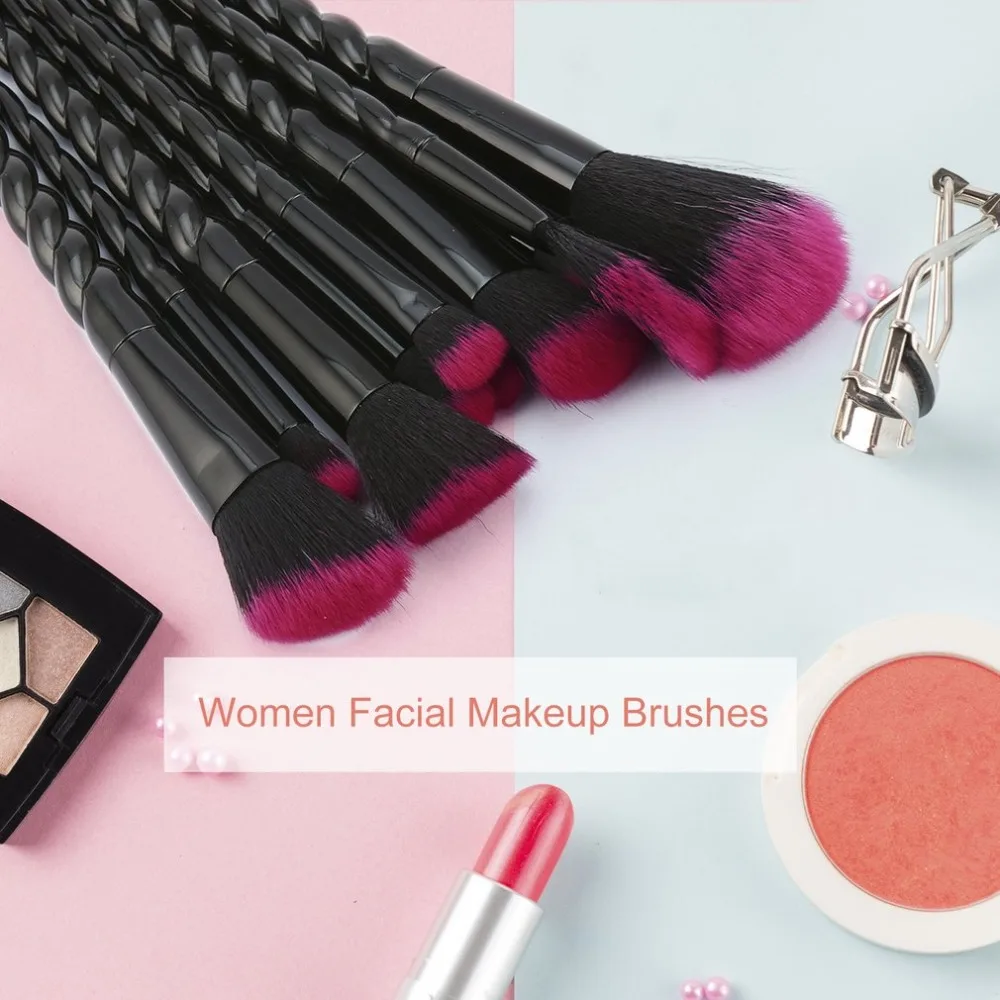 10 шт./компл., фиолетовые спиральные дизайнерские пластиковые ручки, косметические кисти для макияжа, косметическая основа, пудра, румяна, макияж, кисть, держатель, инструмент