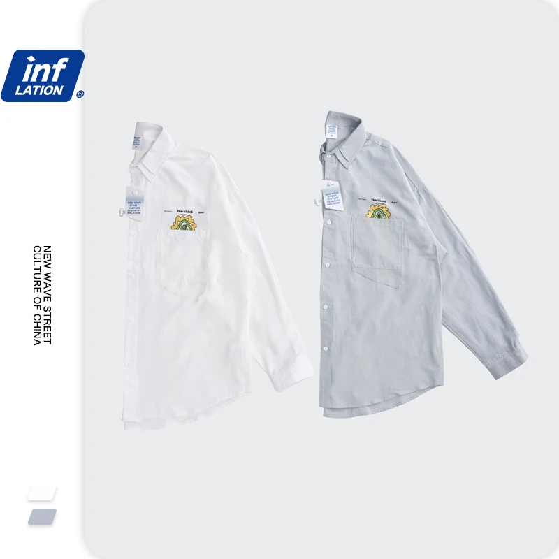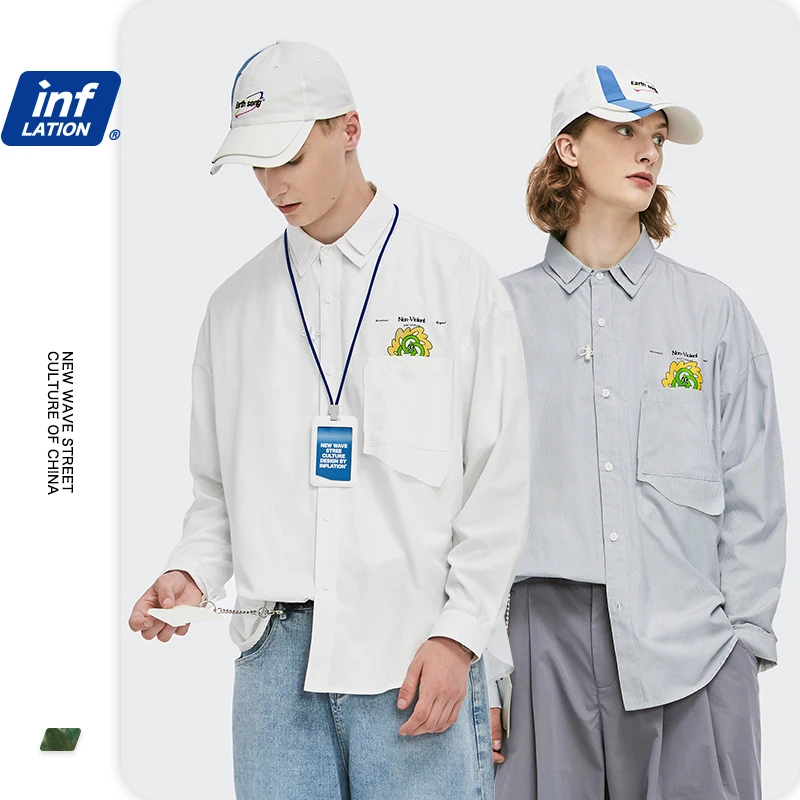 Мужская рубашка в стиле Харадзюку INFLATION, рубашка в полоску с длинными рукавами и забавным принтом для осени 2020