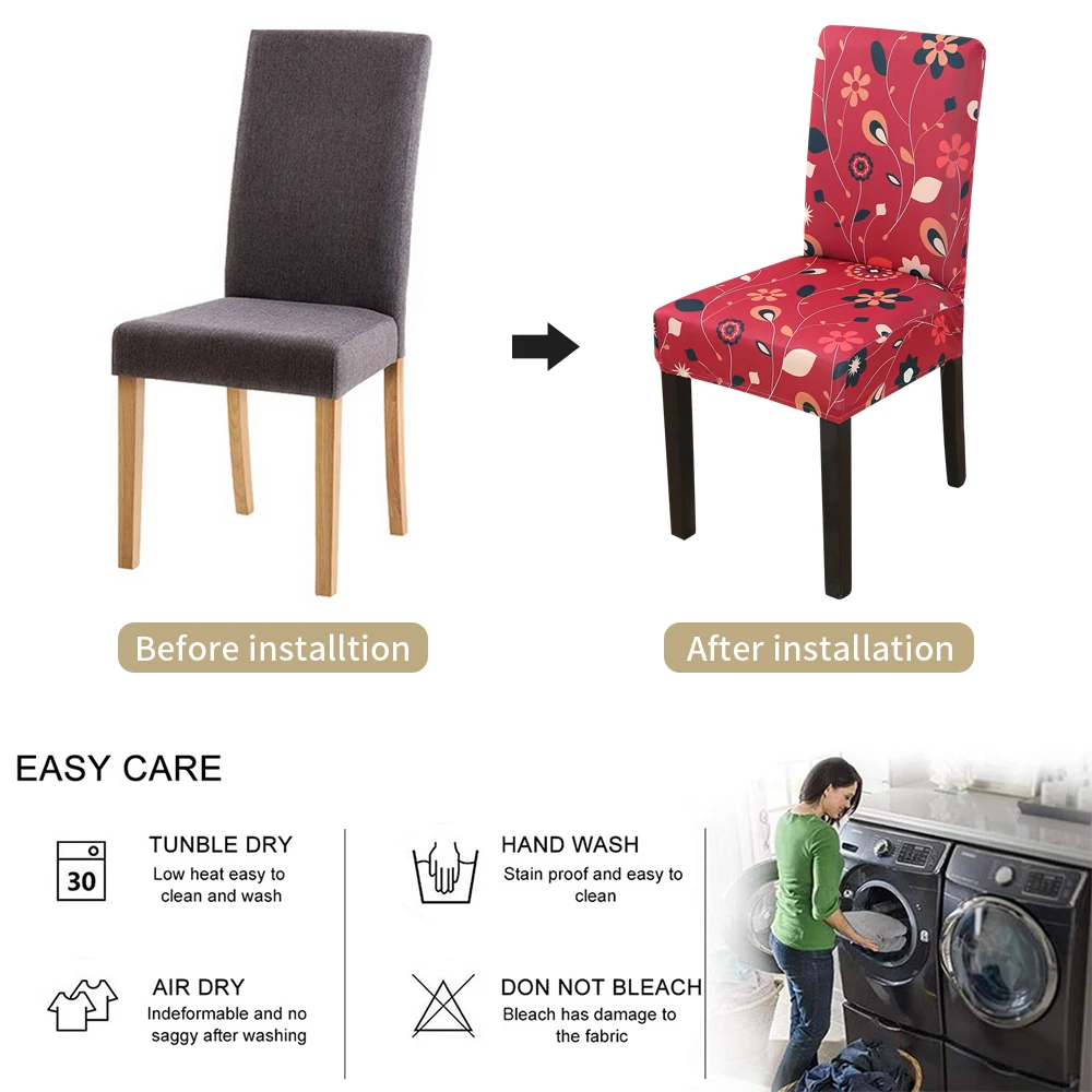 Чехол на стул с цветочным принтом, эластичные чехлы на сиденья для столовой, съемный чехол для стульев