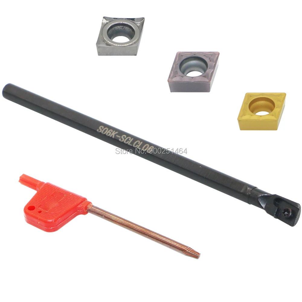Токарный инструмент с ЧПУ, сверлильный резак с внутренним отверстием S06K-SCLCL06(6 мм) слева, с 3 лезвиями из твердого сплава CCMT060204(CCMT21.51).