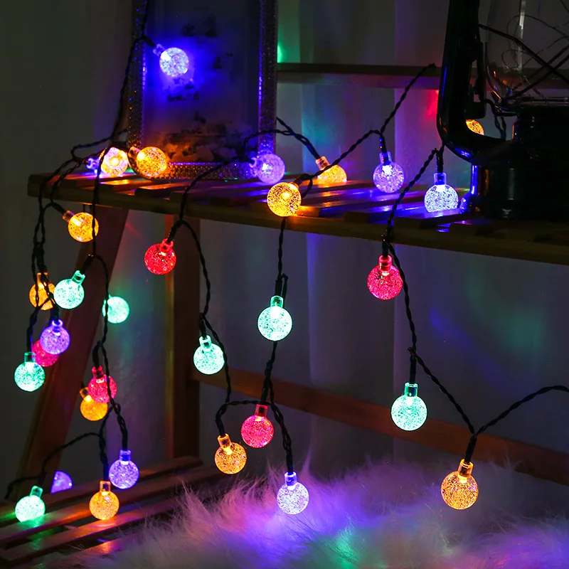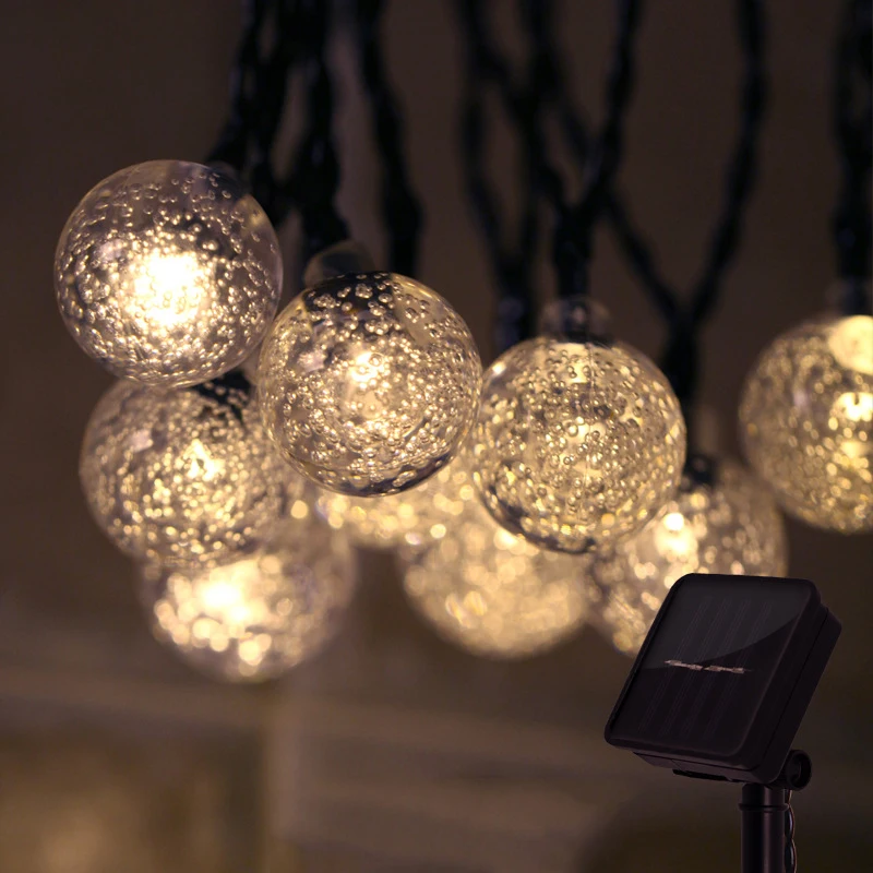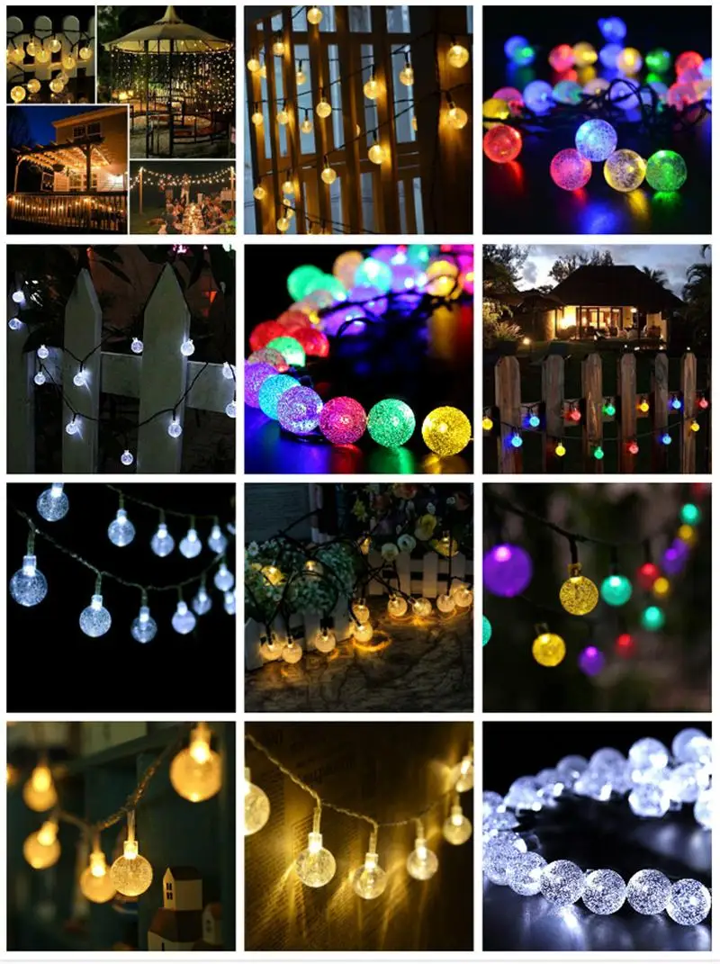 Светодиодная лента с лампочками в форме хрустального шара, уличный шнурок с лампочками гирлянды на солнечной энергии сада, Рождественское украшение, 2050 светодиодный, 5 м, 10 м
