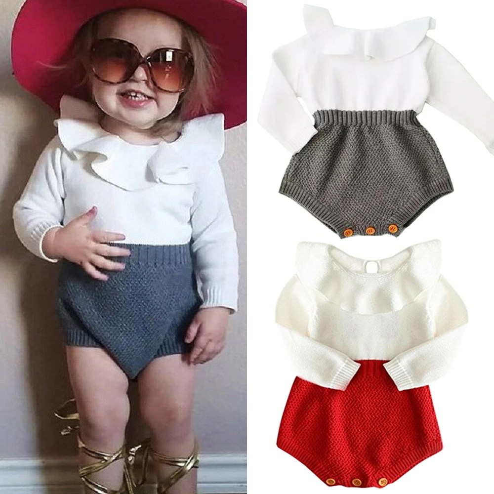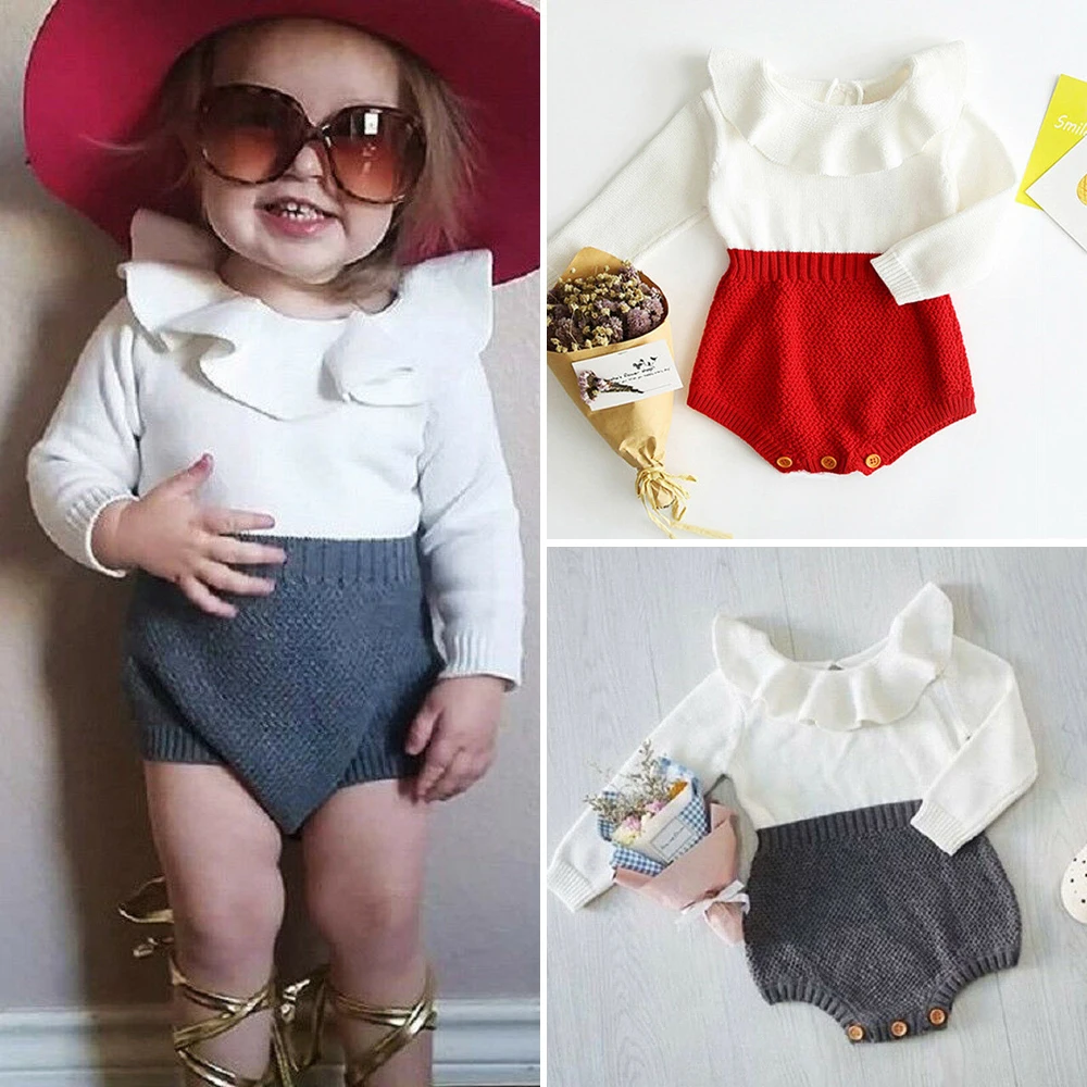 Осенне-зимняя одежда для маленьких девочек 2020 шерстяные вязаные топы для маленьких девочек боди Лоскутные костюмы с длинным рукавом комплект одежды