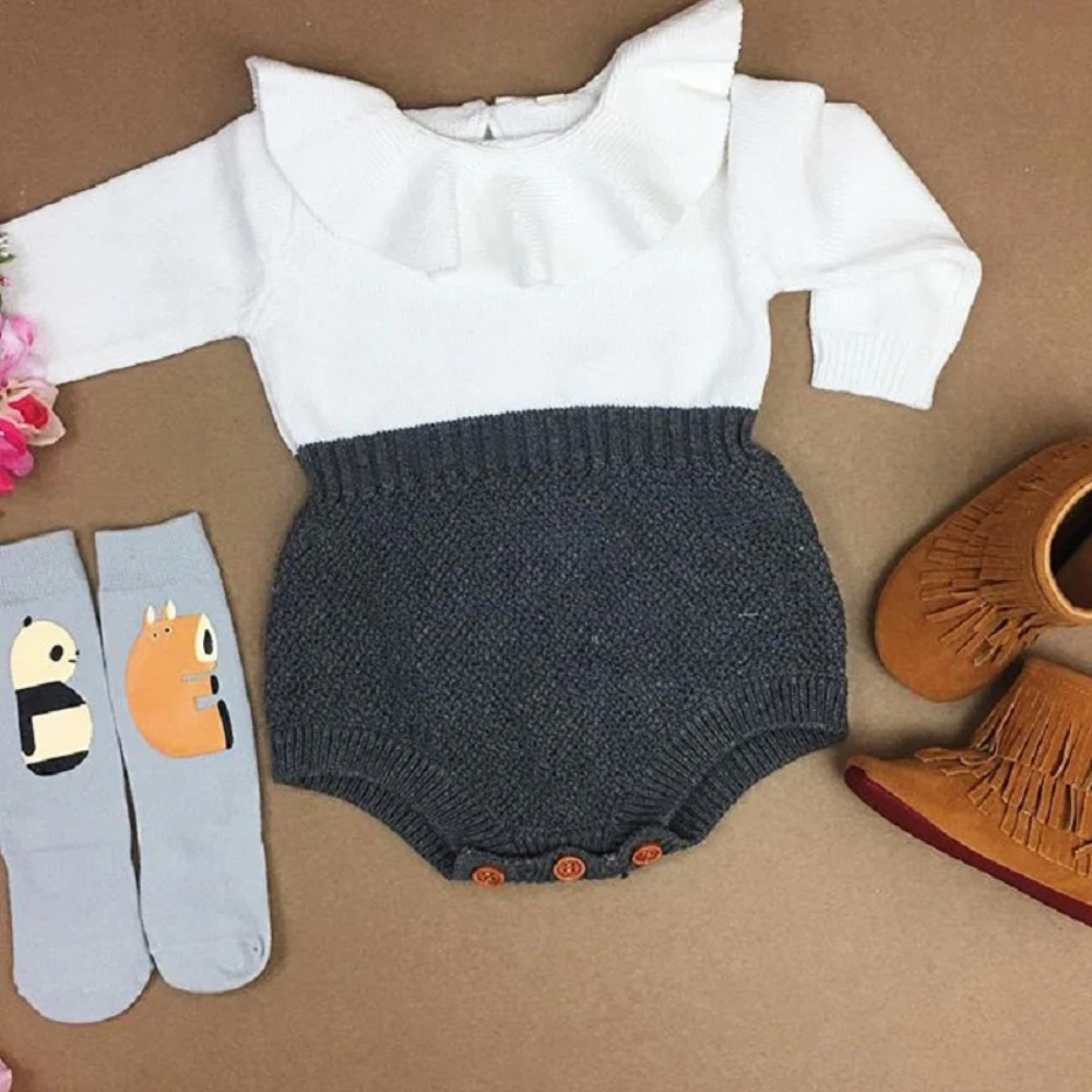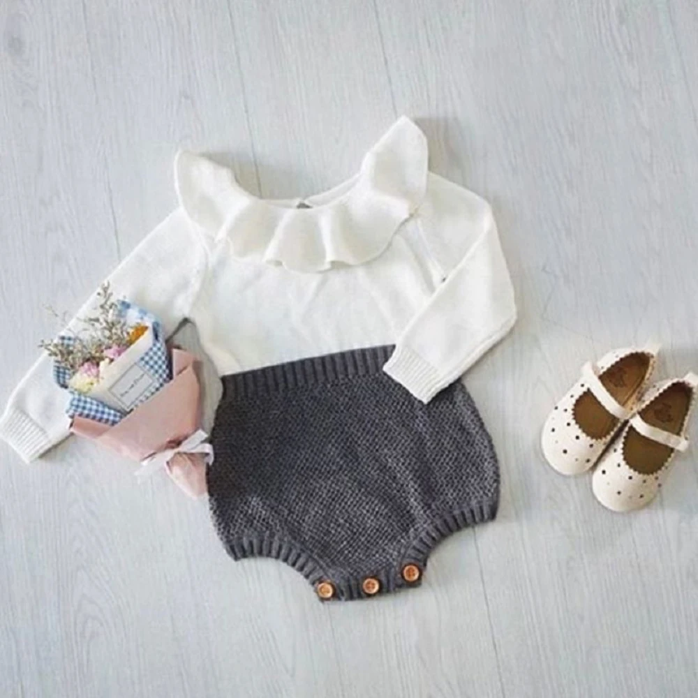 Комбинезон для новорожденных девочек, вязаный шерстяной топ с длинн...