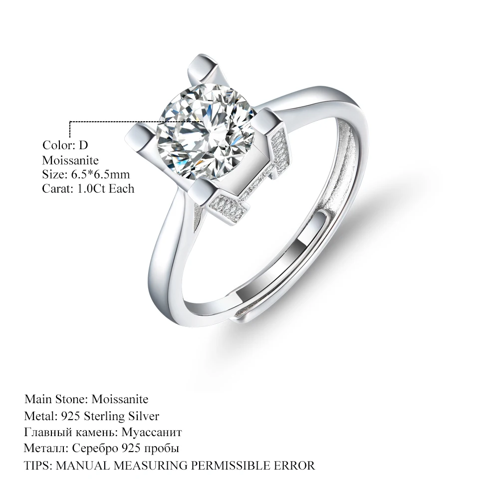 Женское кольцо из серебра 925 пробы с муассанитом, 1 карат, 2 карат...