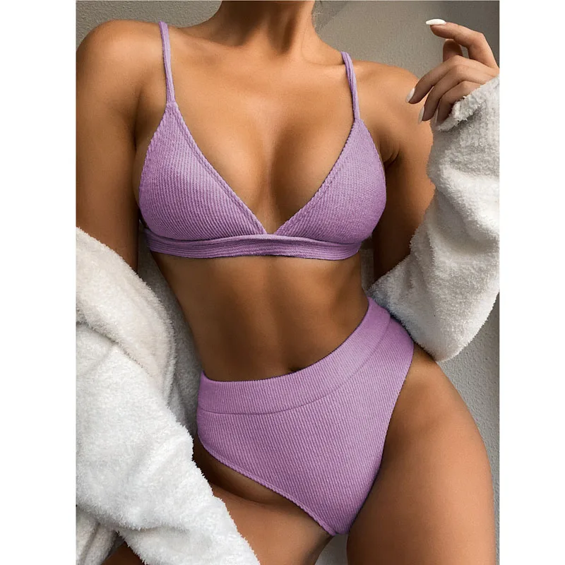 PLAVKY сексуальный однотонный ребристый треугольный топ с высокой т...