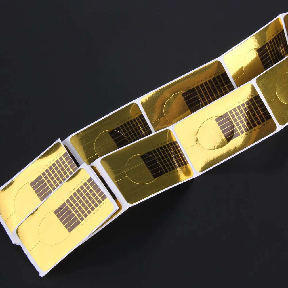 Золотые формы для дизайна ногтей 100 шт.50 шт., направляющие для скульптурирования, наклейки для салона, акриловые гелевые Типсы для ногтей, формы для наращивания ногтей, наклейки, инструменты