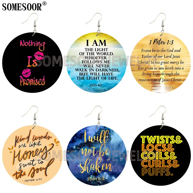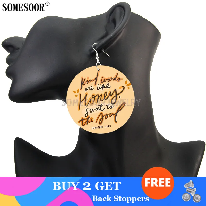 Ювелирные изделия SOMESOOR, знаменитые английские предложения, искусство, шрифт, двусторонняя печать, деревянные африканские Висячие серьги для женщин