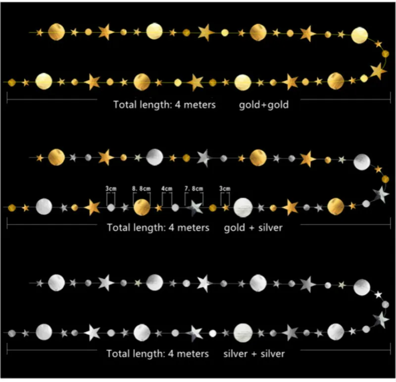 Свадебное украшение, 4 м, золотые, серебряные звезды, круглые бумаж...