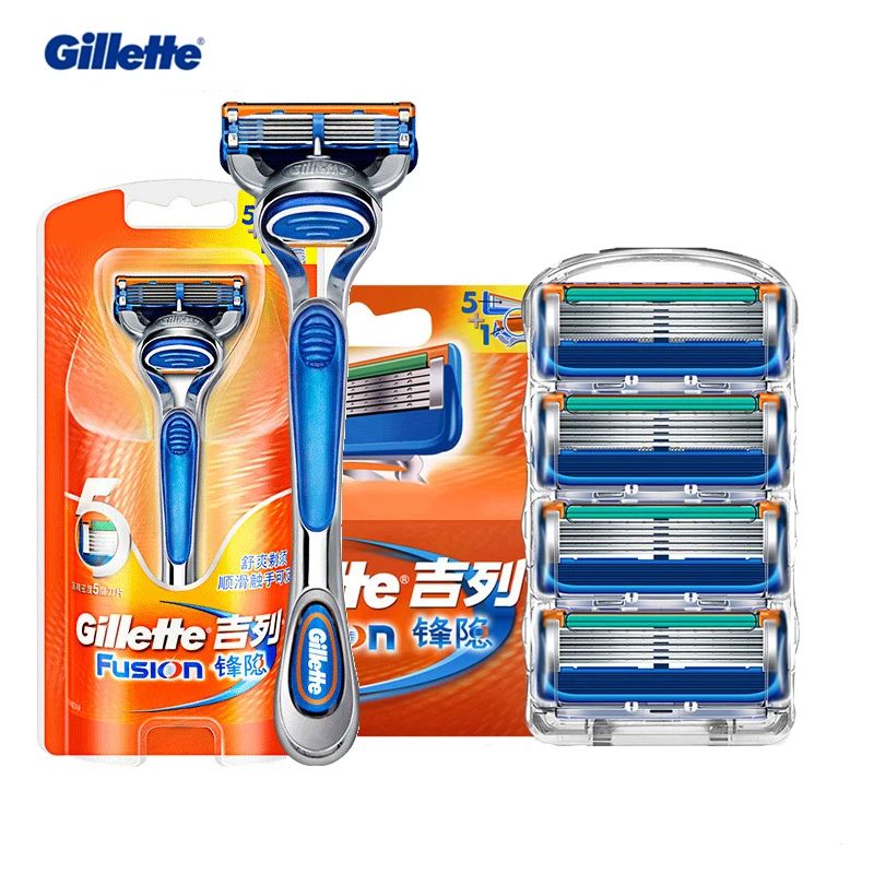 Gillette Fusion бритва 1 ручка + N лезвия профессиональные Для мужчин уход за кожей лица для бритья волос удобные 5-ти слойной 100% Германия импортный клинок