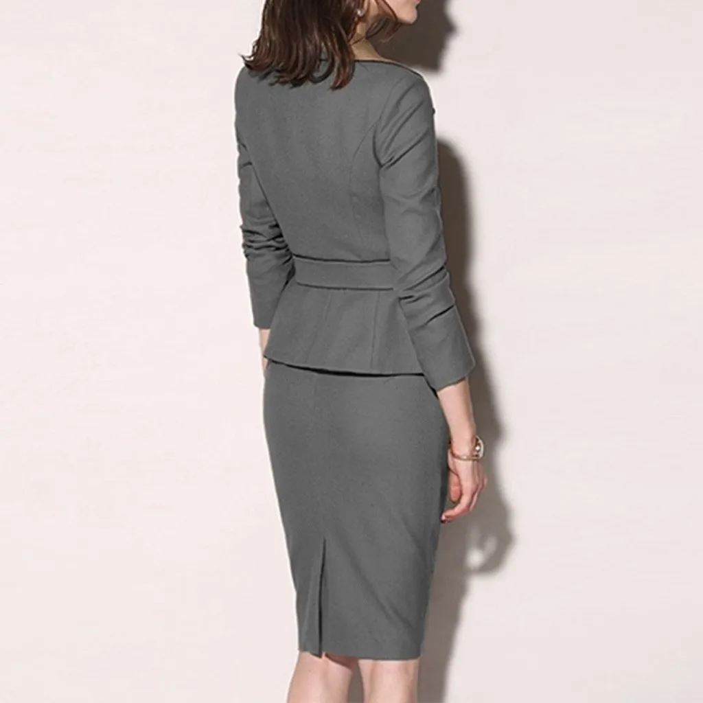 Женский костюм, юбка, жакет, женская одежда для офиса, элегантная юбка с длинным рукавом и оборками, складчатый Блейзер, комплект из 2 предметов, офисная юбка # T1G