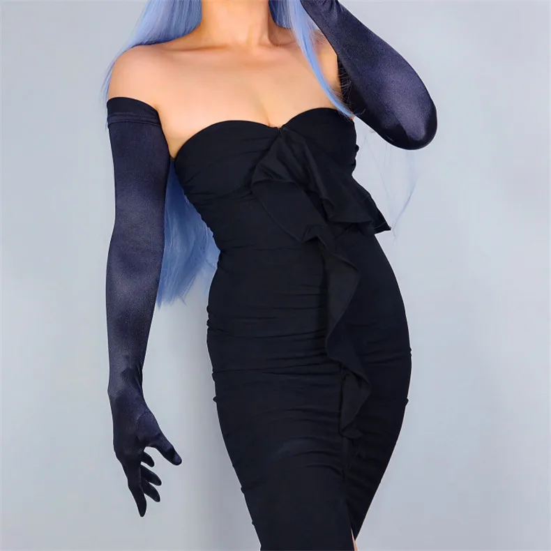 Атласные шелковые перчатки 70 см, эластичные мерсеризованные перчатки с жемчугом, сатиновые черные удлиненные женские солнцезащитные перчатки WSG11