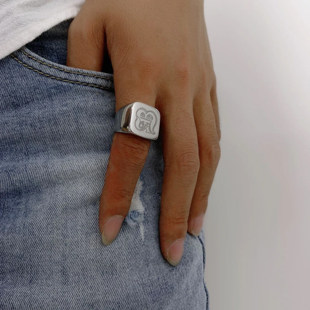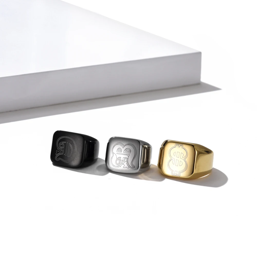 Мужское кольцо с гравировкой букв и символов, из нержавеющей стали