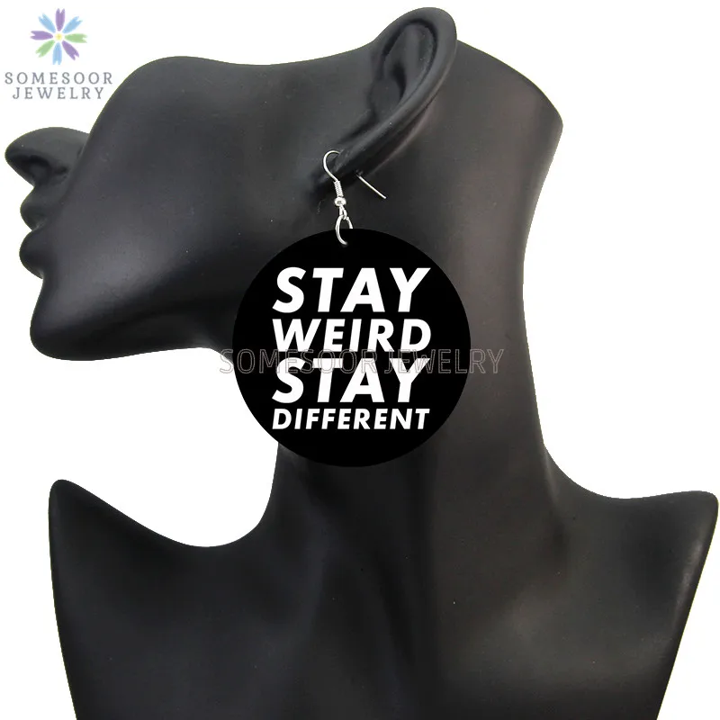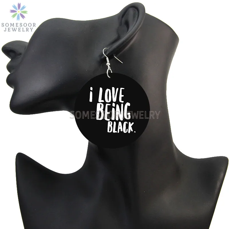 SOMESOOR Love Be Pro-деревянные серьги-подвески в виде надписей черного цвета с различными напечатанными петлями для подарка женщине