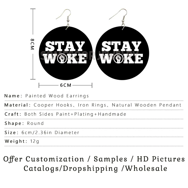 SOMESOOR Jesusis Poppin меланин деревянные висячие серьги черная Ам...