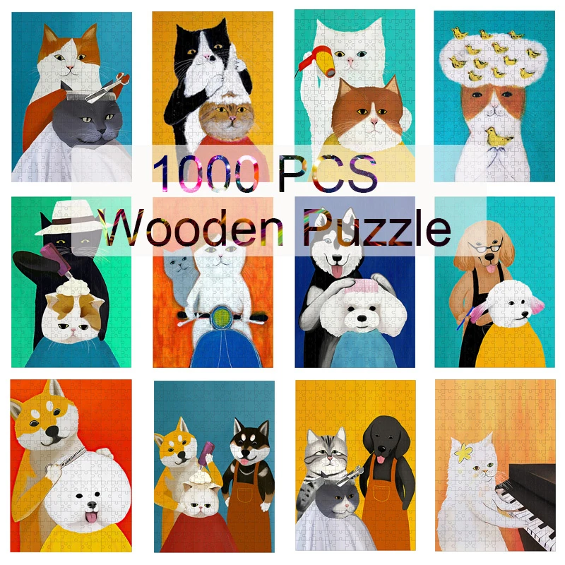 DIY 1000 шт. головоломки Забавные кота собаки арт деревянные головоломки для детей и взрослых Развивающая игра игрушки для детей Обучающие расслабляющий подарок