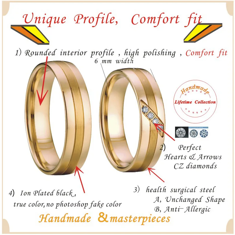Золотое титановое кольцо для мужчин и женщин, 1 пара, для свадьбы, ...