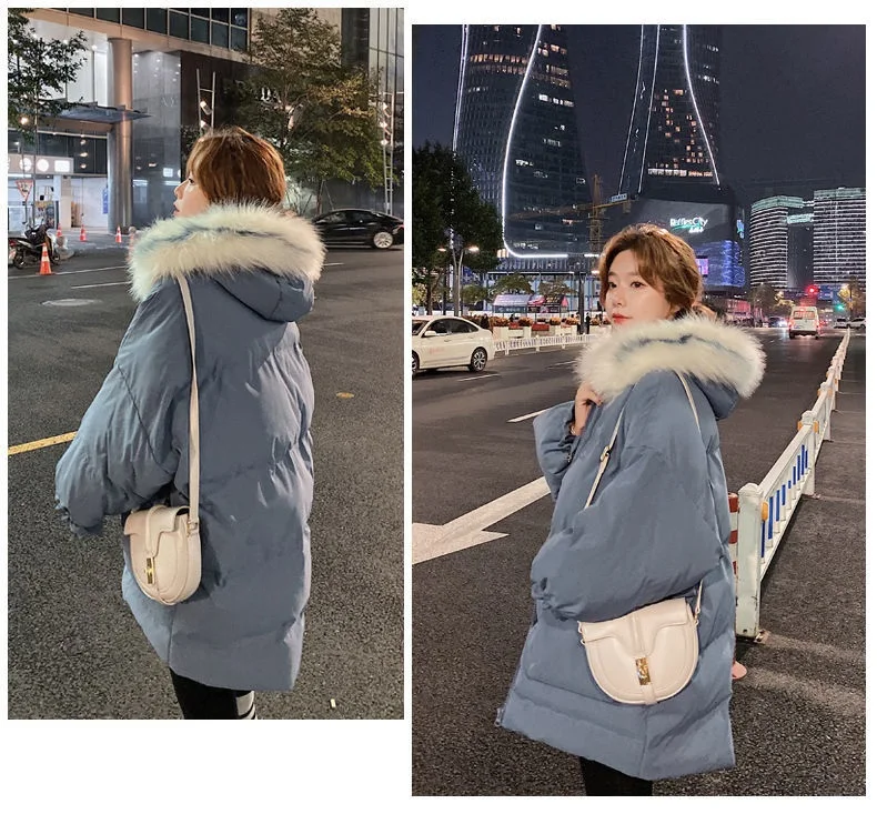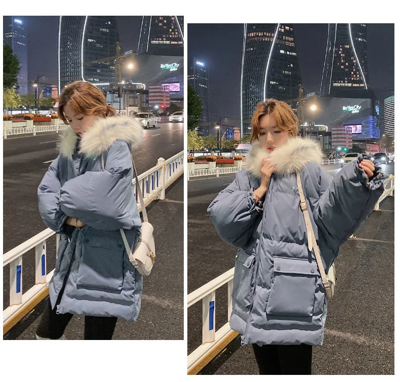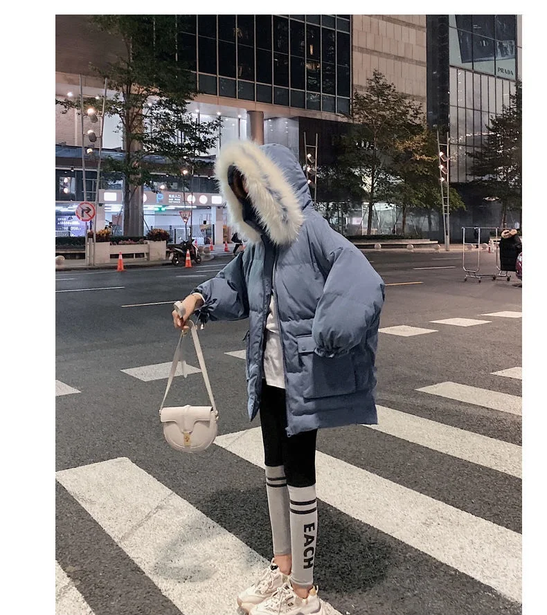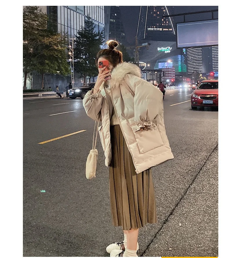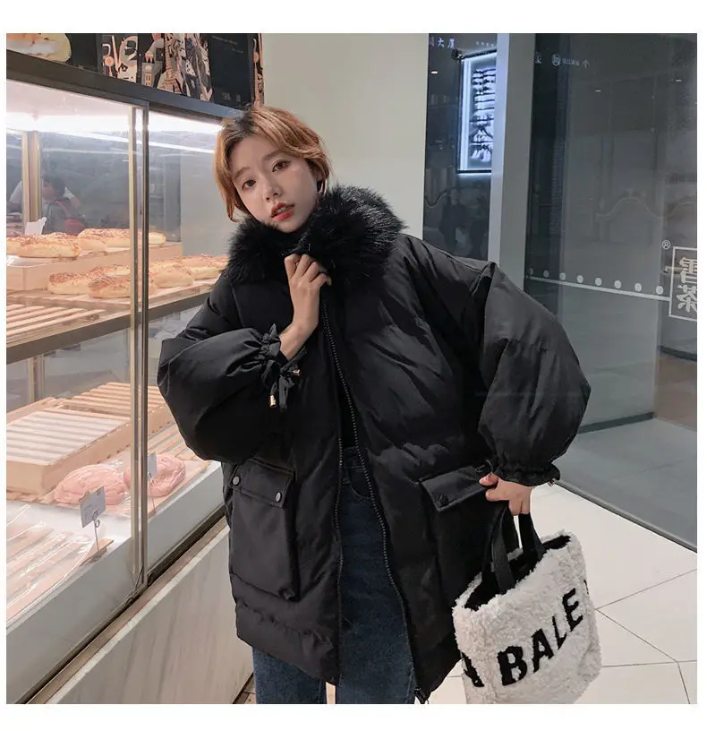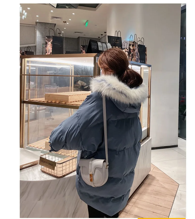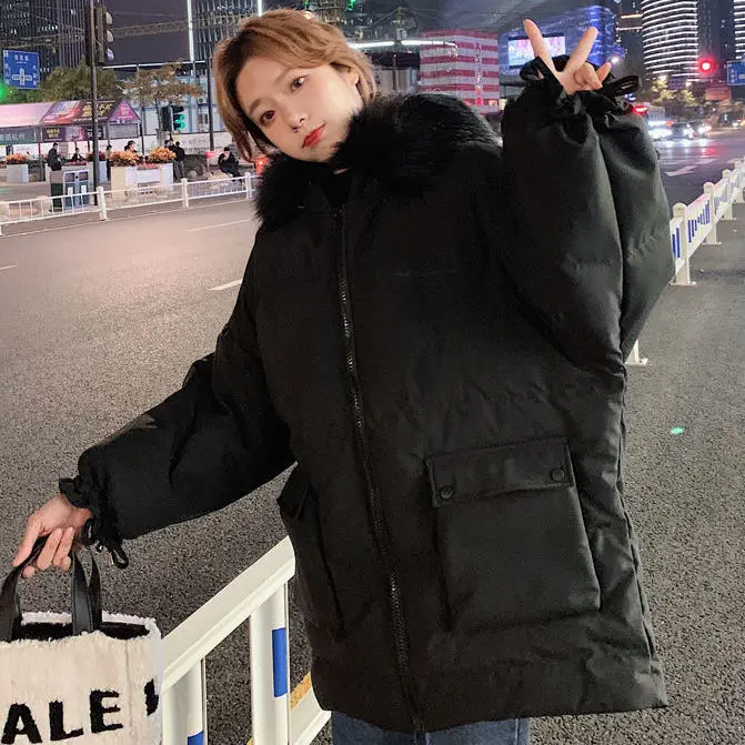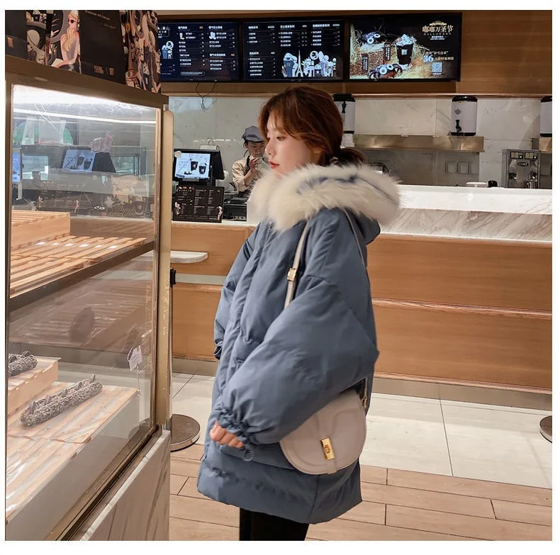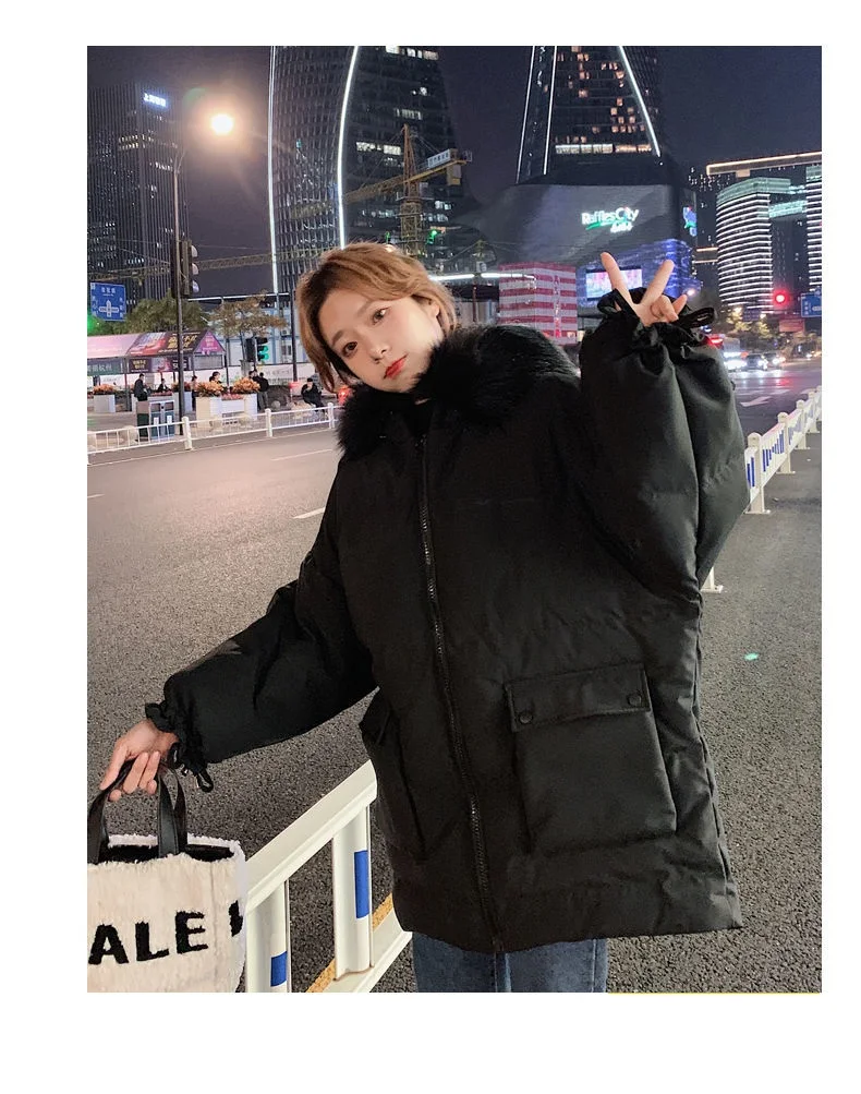 Женская куртка с большим меховым воротником, хлопковая куртка с капюшоном, пуховая парка, зимняя Свободная верхняя одежда, 2021