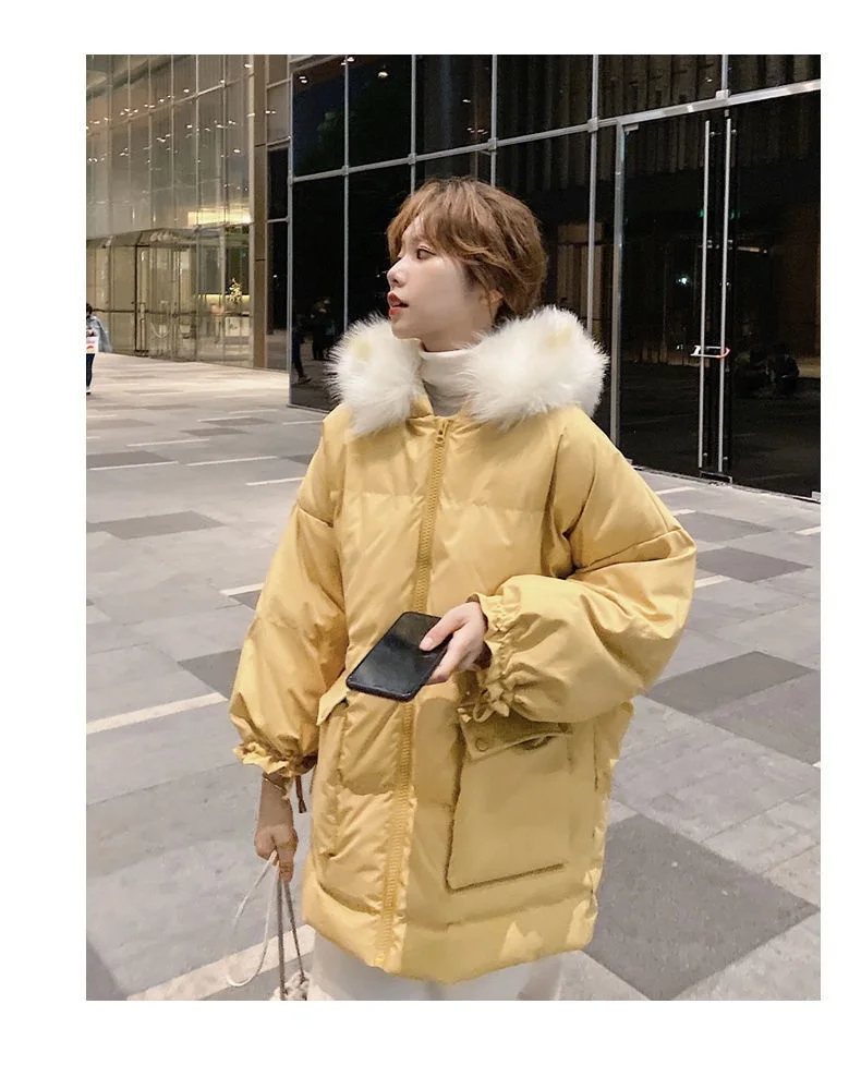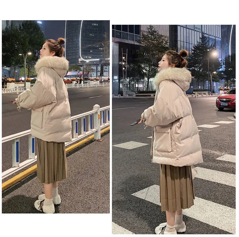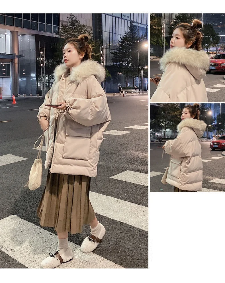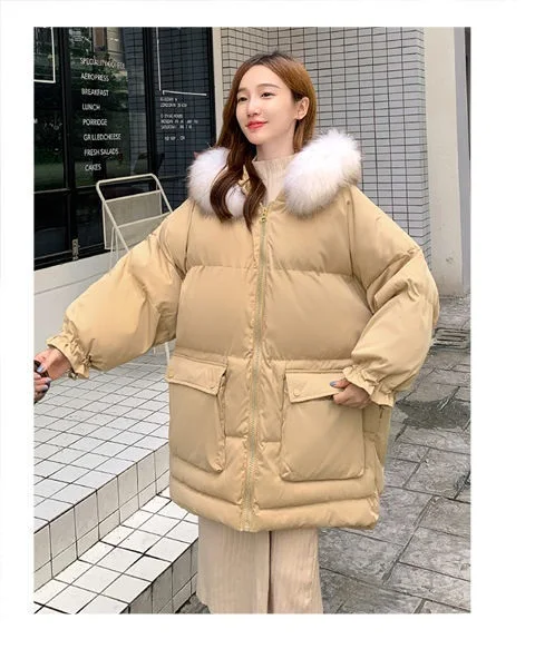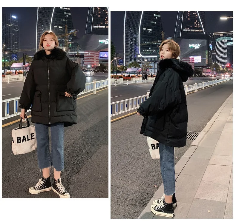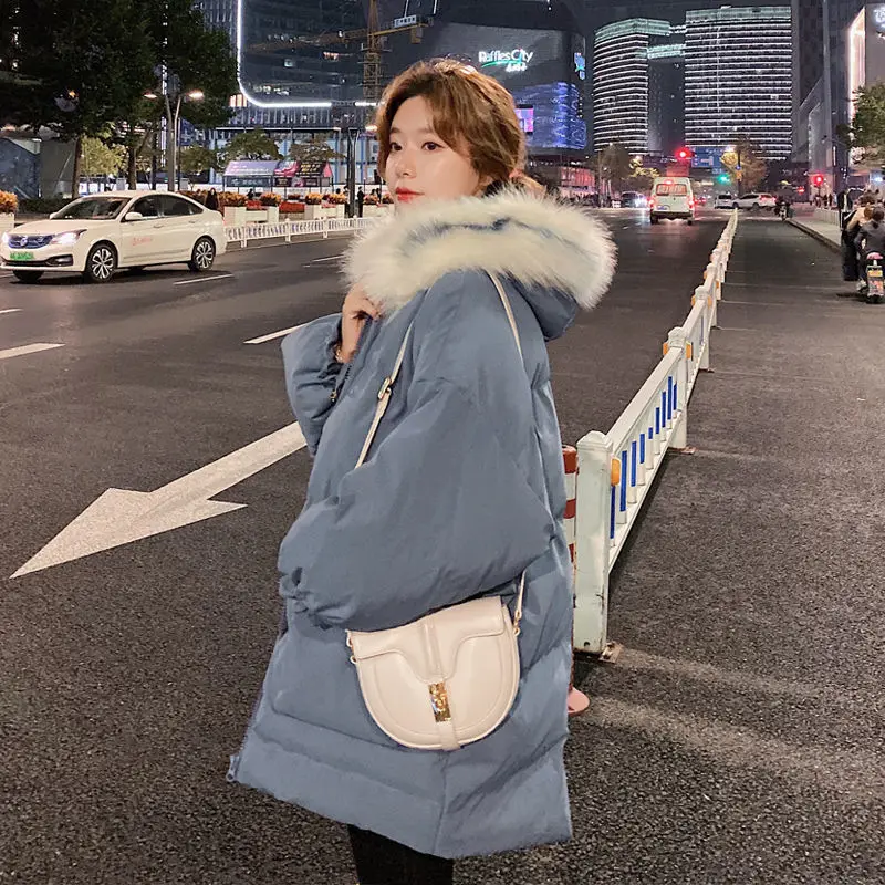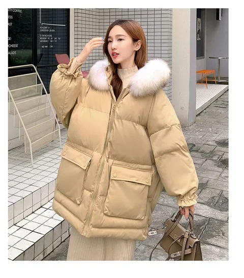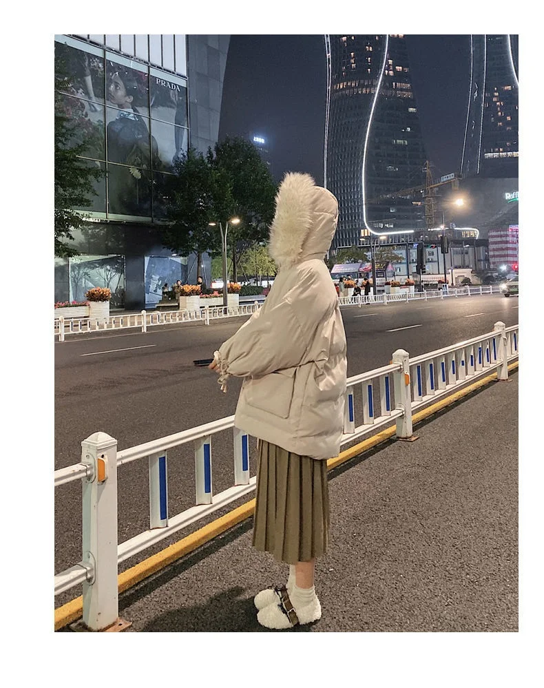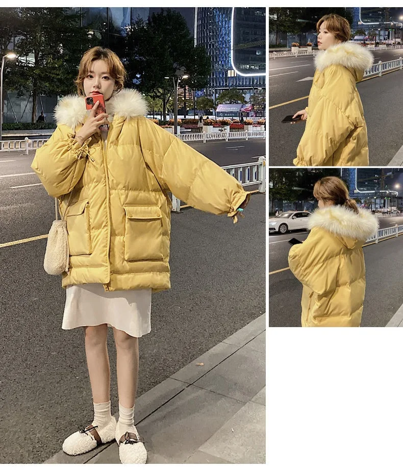 Женская куртка с большим меховым воротником, хлопковая куртка с капюшоном, пуховая парка, зимняя Свободная верхняя одежда, 2021