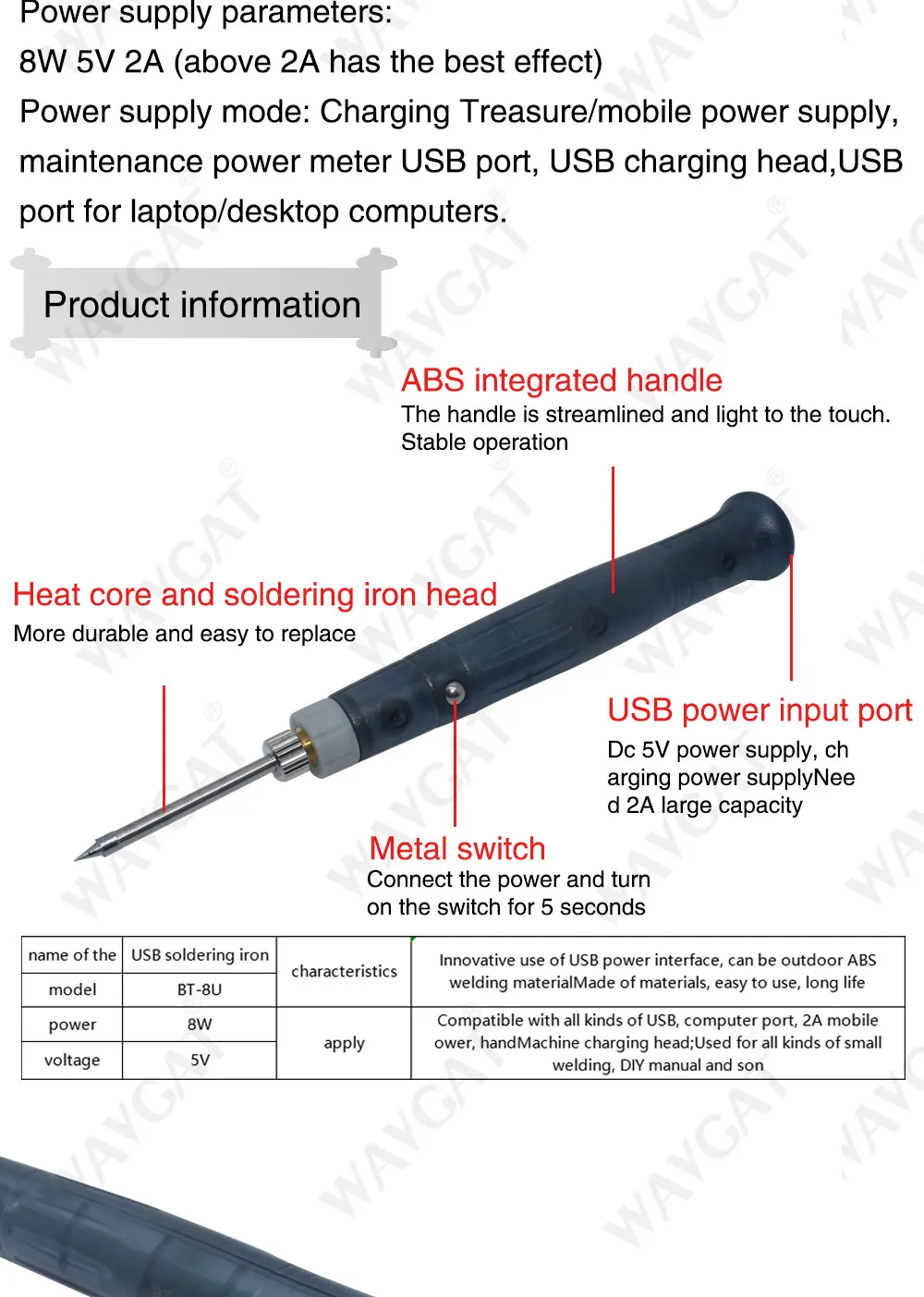 Электрический паяльник с питанием от USB, сварочный пистолет, набор ручных инструментов с быстрым нагревом, сварочный инструмент для улицы, модуль сделай сам, 5 В, 8 Вт