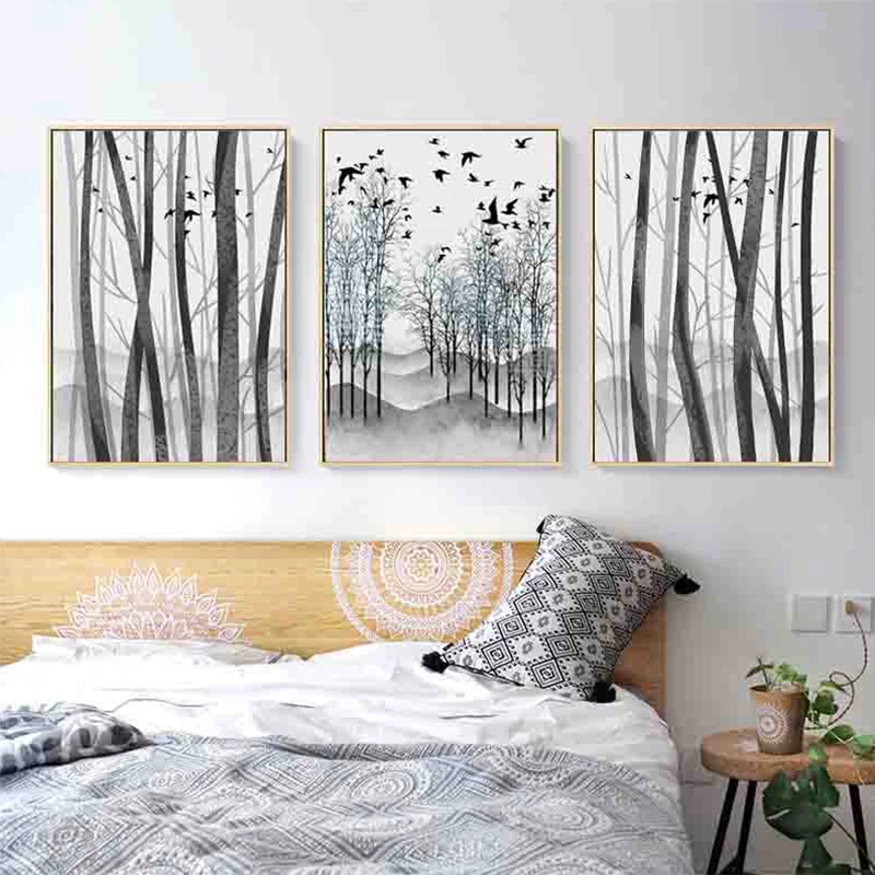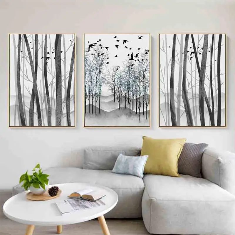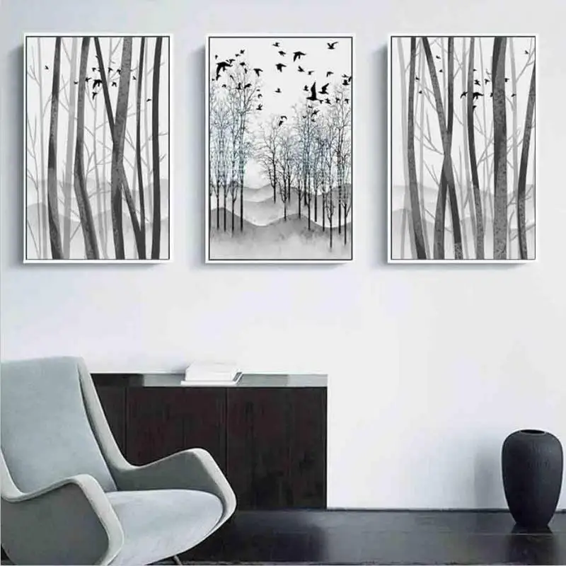 Настенный постер в скандинавском стиле с абстрактным рисунком леса, 3 шт.