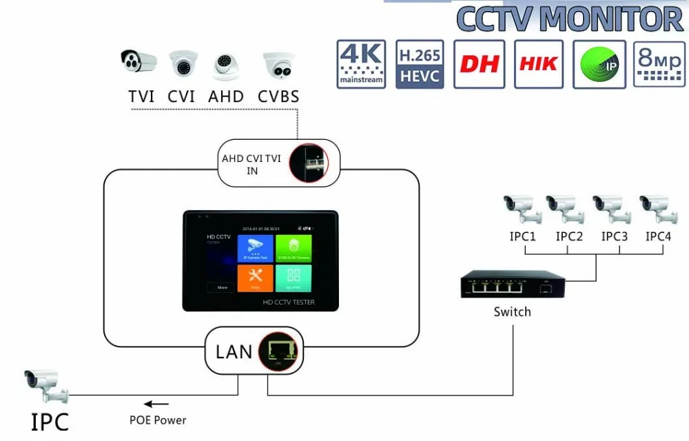 4K IP CCTV тестер CCTV монитор POE Тестер видео тестер CVI TVI AHD CVBS камера тестер с Wi-Fi точка доступа PTZ контроль монитор для камеры мини монитор игровой монитор