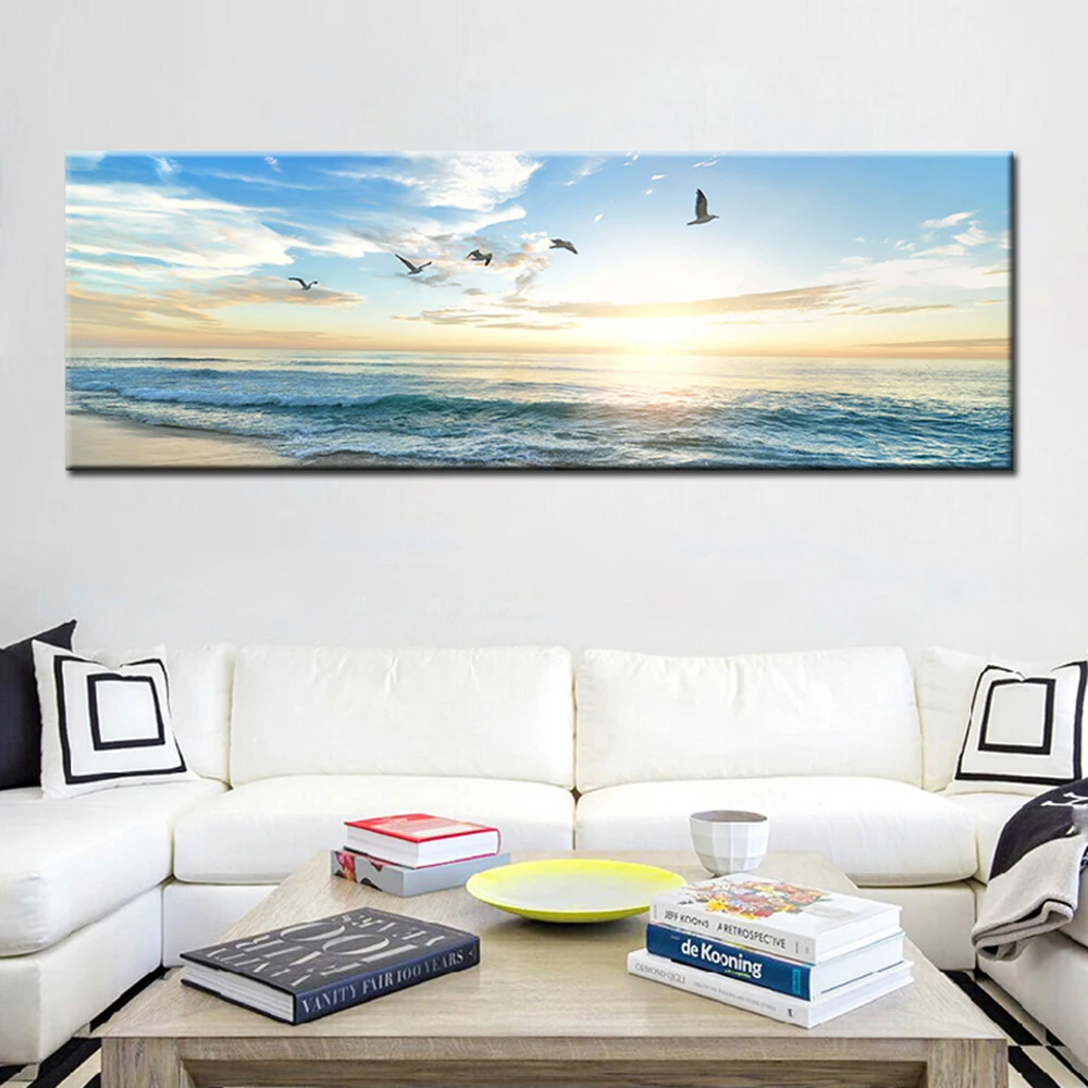 Алмазная картина 5D с изображением морского пляжа, летающих птиц, "сделай сам", вышивка крестом, пейзаж, мозаика из страз, настенное украшение, украшение для дома