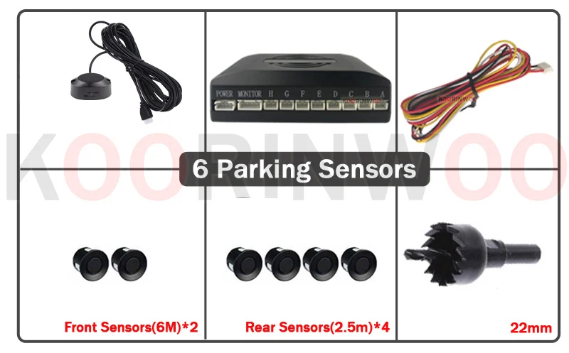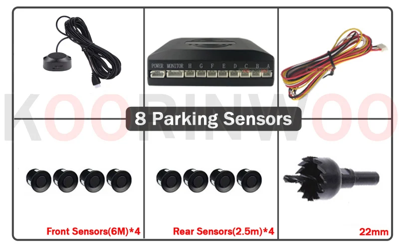 Парктроник Koorinwoo, Система помощи при парковке с регулируемым динамиком, 8 и 4 датчиками