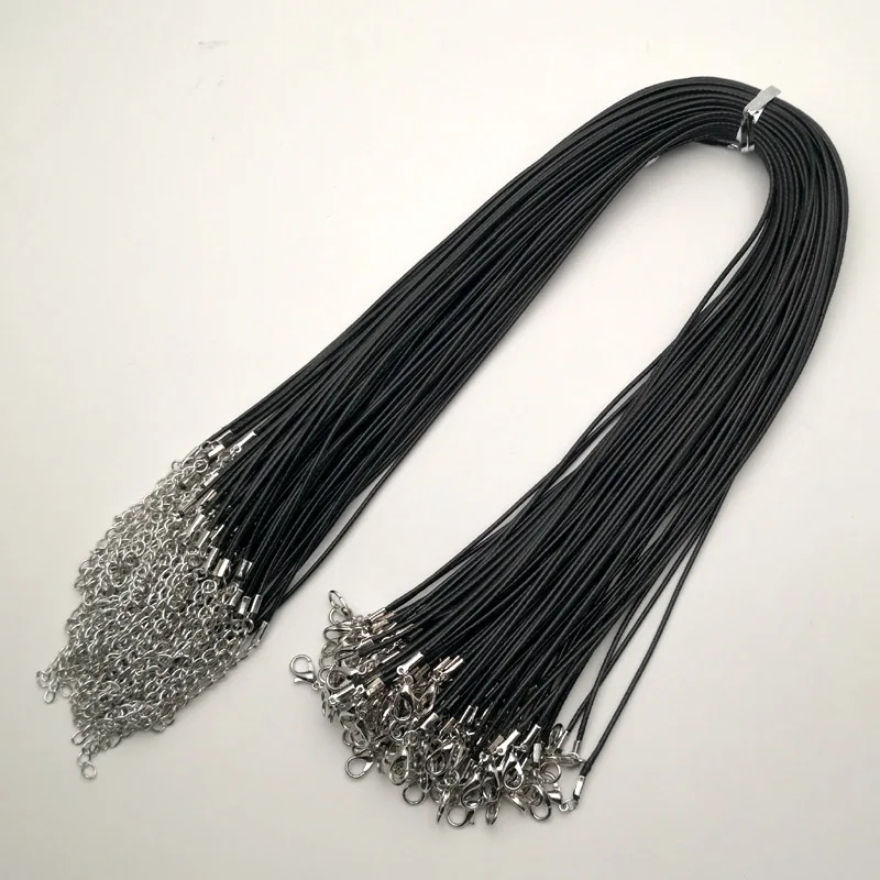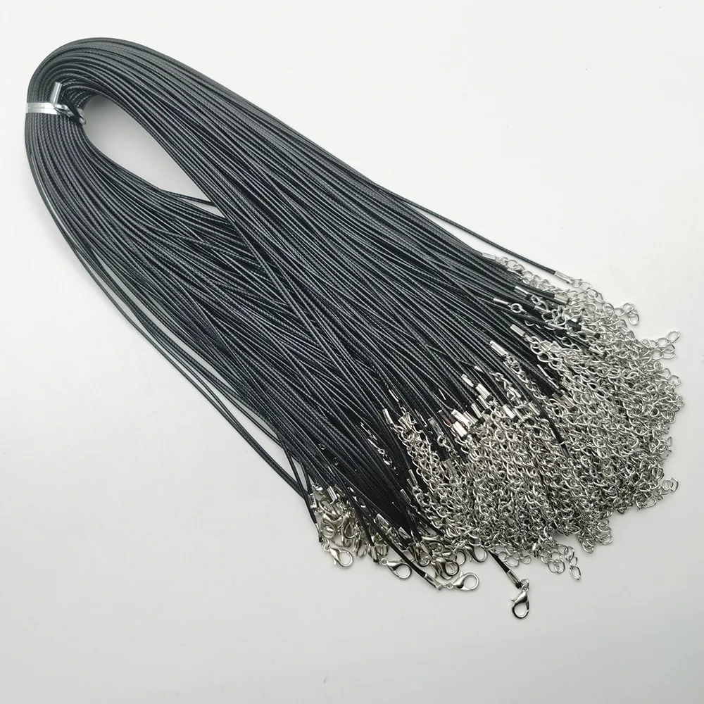 Оптовая продажа 1,5 мм черная Вощеная Веревка ожерелье с застежкой-...
