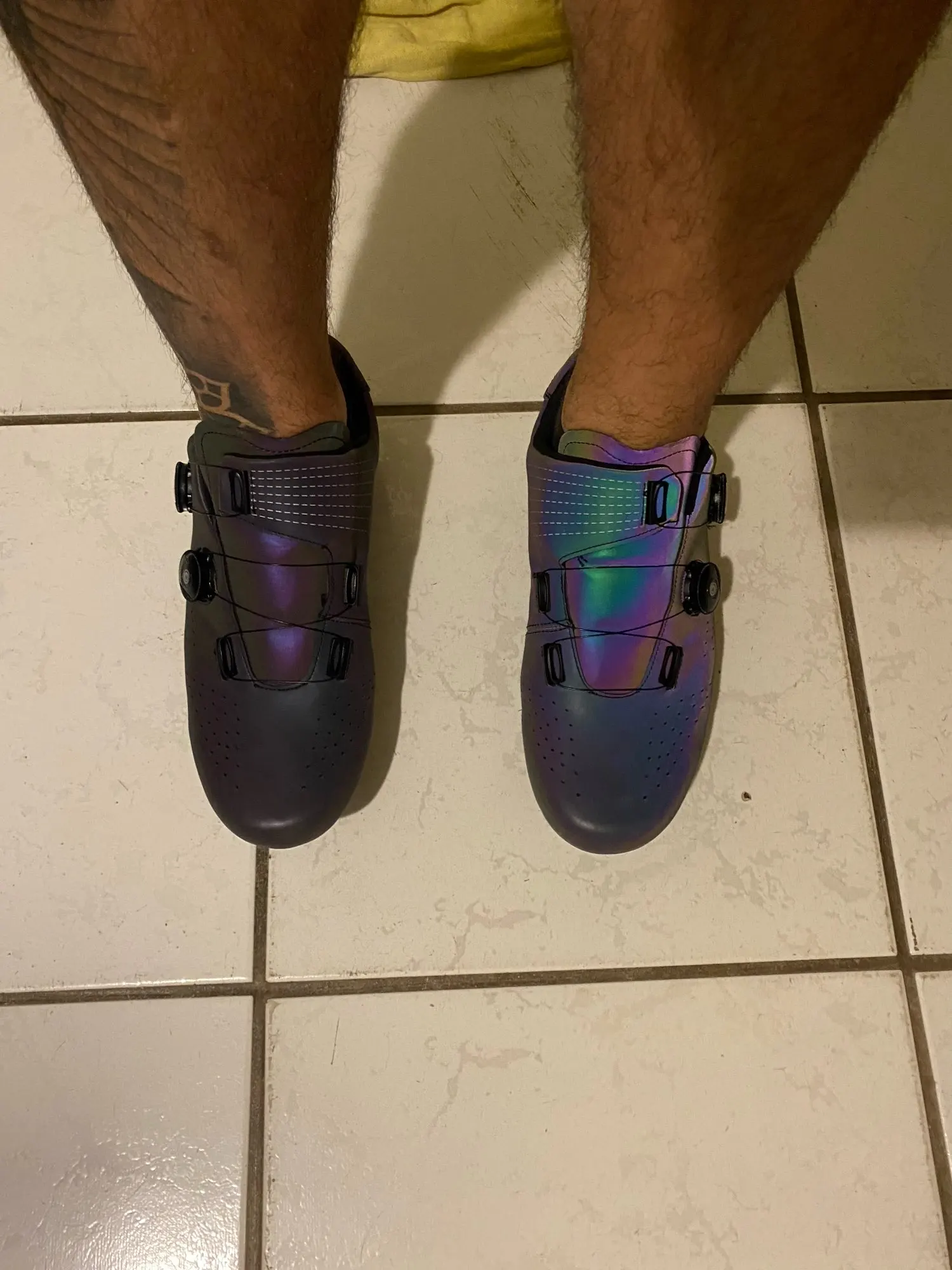 Ультралегкие велосипедные кроссовки с двойной пряжкой, мужские светящиеся ботинки для езды на велосипеде, самоблокирующиеся, велосипедная планка