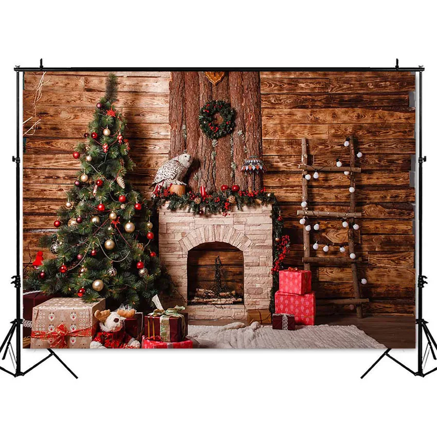 Фон для фотосъемки в стиле ретро Рождественский камин Рождественская елка деревенский деревянный фон для фотостудии фотосессия новорожденный фото