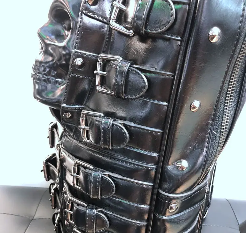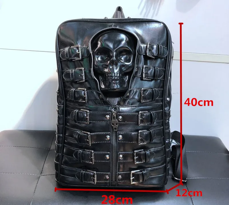Роскошный модный мужской рюкзак из искусственной кожи, сумка для ноутбука, Черный дорожный рюкзак с черепом и заклепками, вместительные школьные сумки, новинка 2022