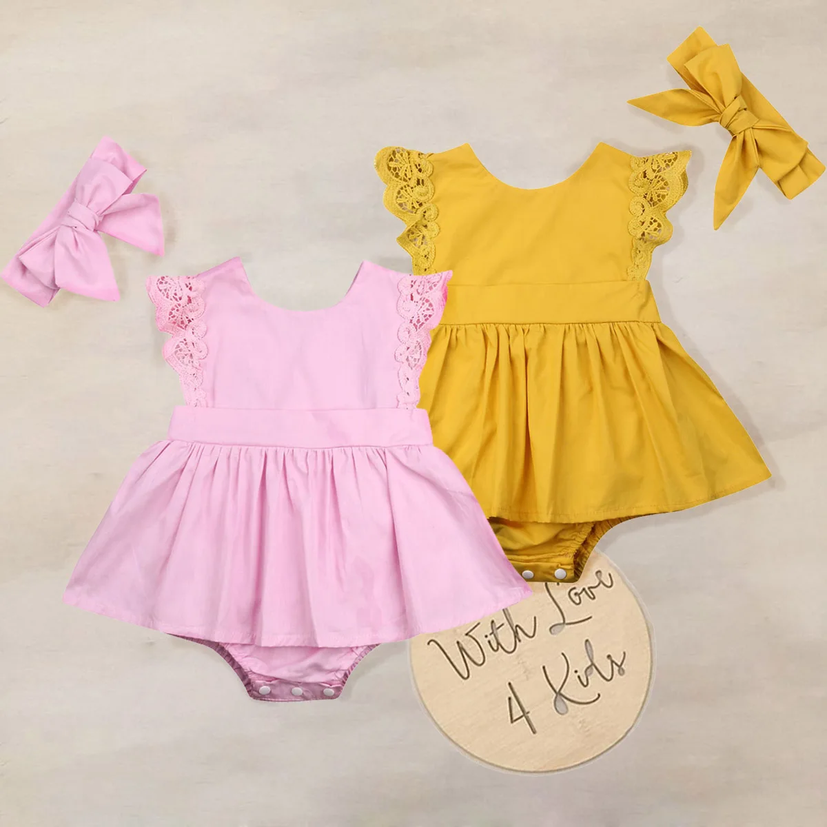 Комбинезон с повязкой на голову, для девочек, летний, однотонный, розовый, желтый
