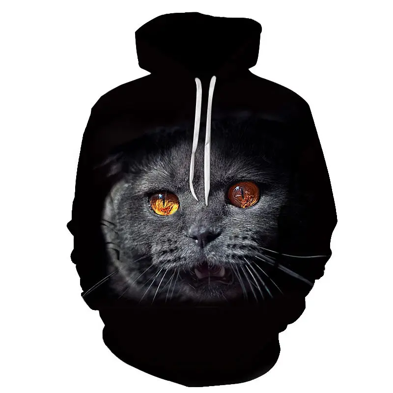 Толстовка Мужскаяженская с 3D-принтом черного кота, повседневный см...