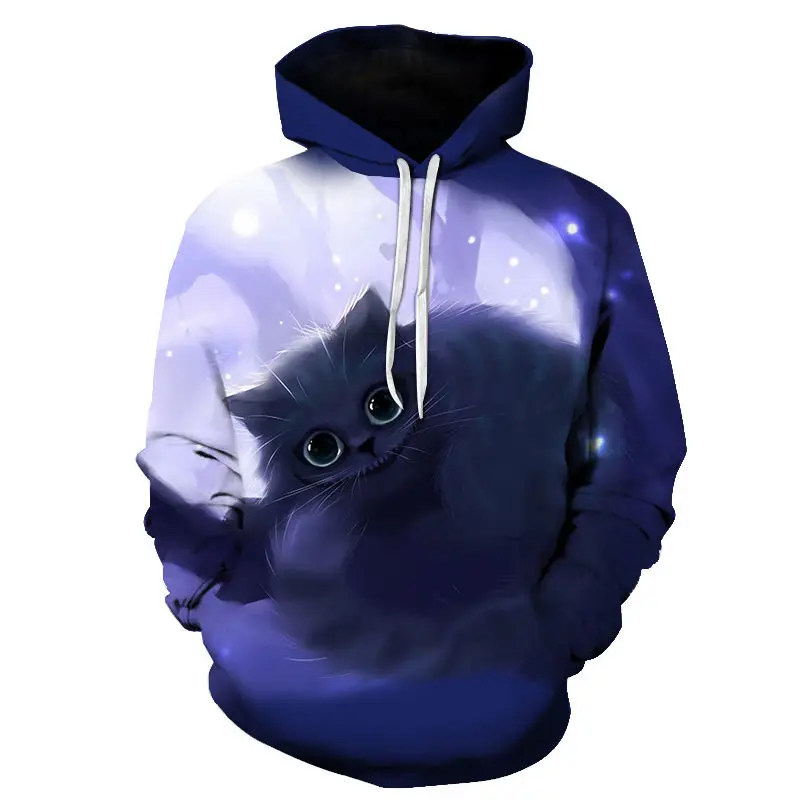 Новинка, черная толстовка с 3d рисунком кота, милый мультяшный Повс...