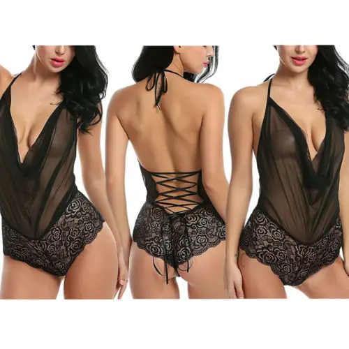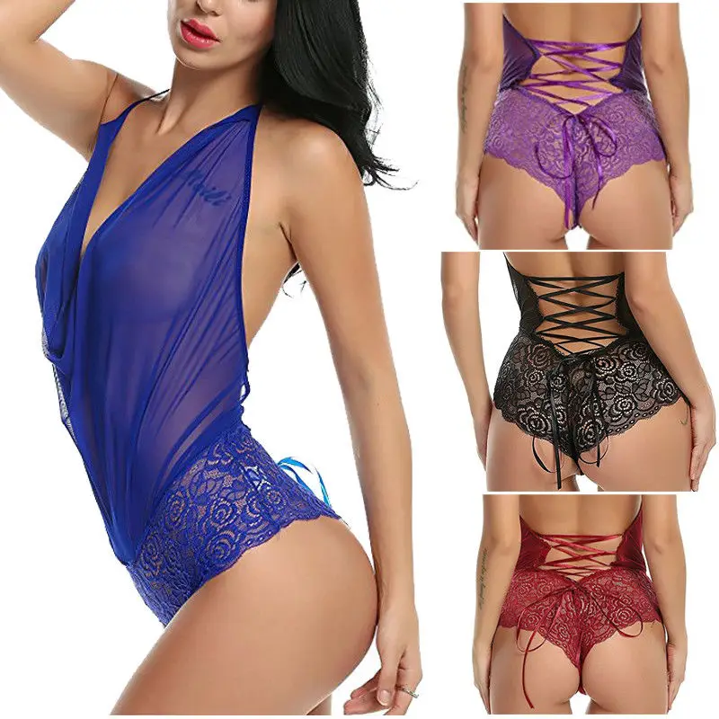 Горячая Мода для женщин стринги кружева Слинг висит шеи забавное ночное белье Сексуальное белье Ночное белье нижнее белье боди размера плюс
