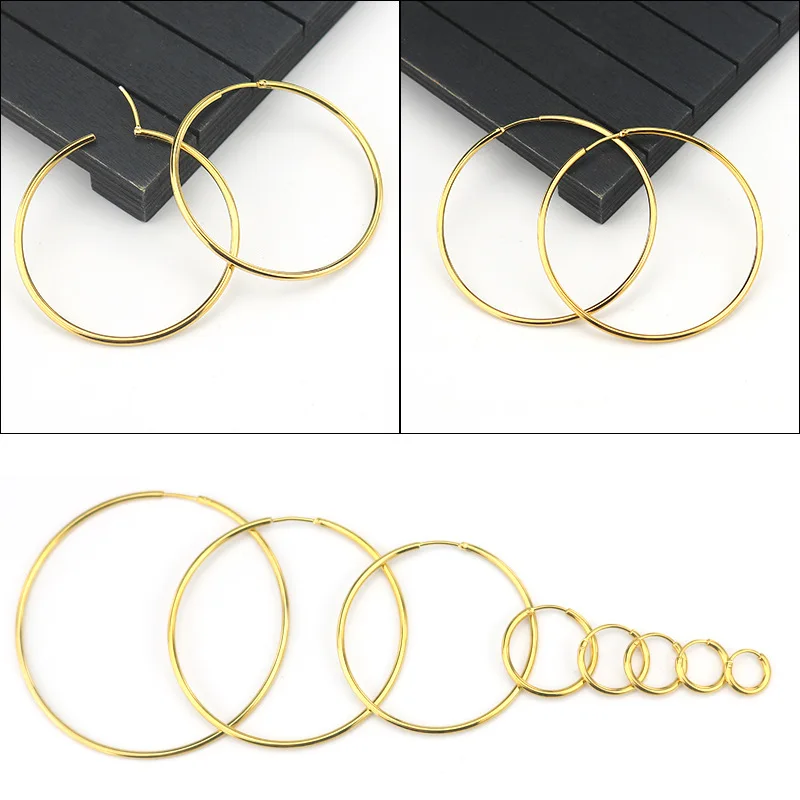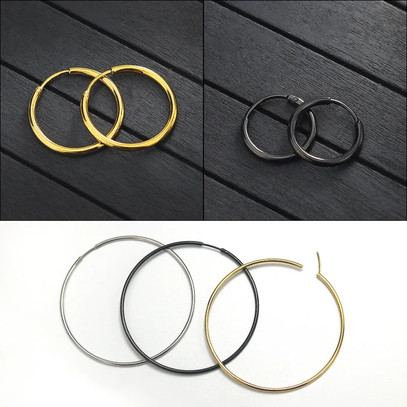 Круглые сережки-Обручи из золотистой стали, черного цвета, не выцве...