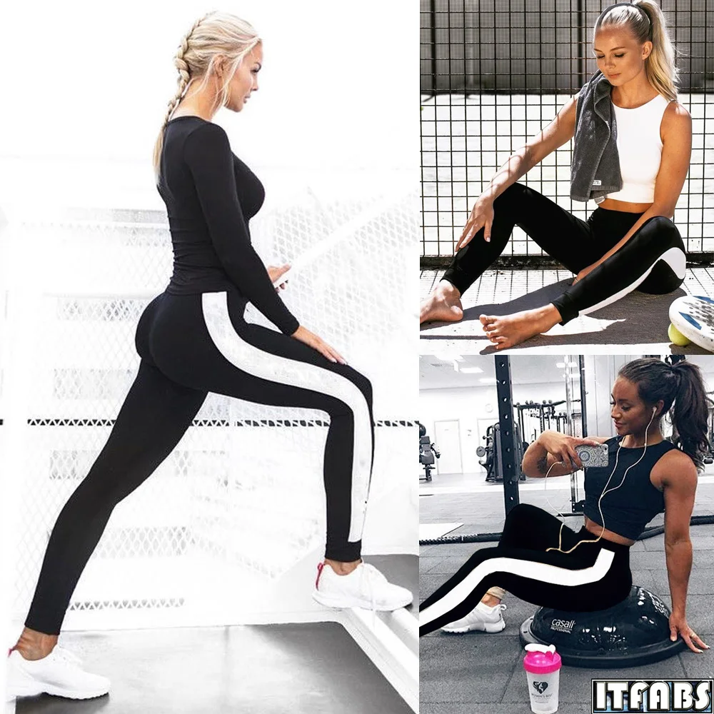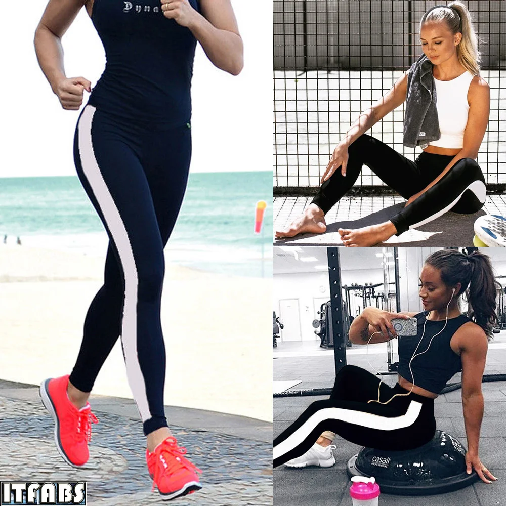 Женские леггинсы для бега и фитнеса, спортивные полосатые облегающи...