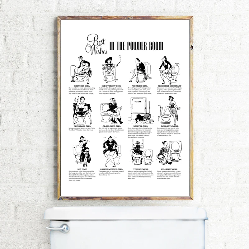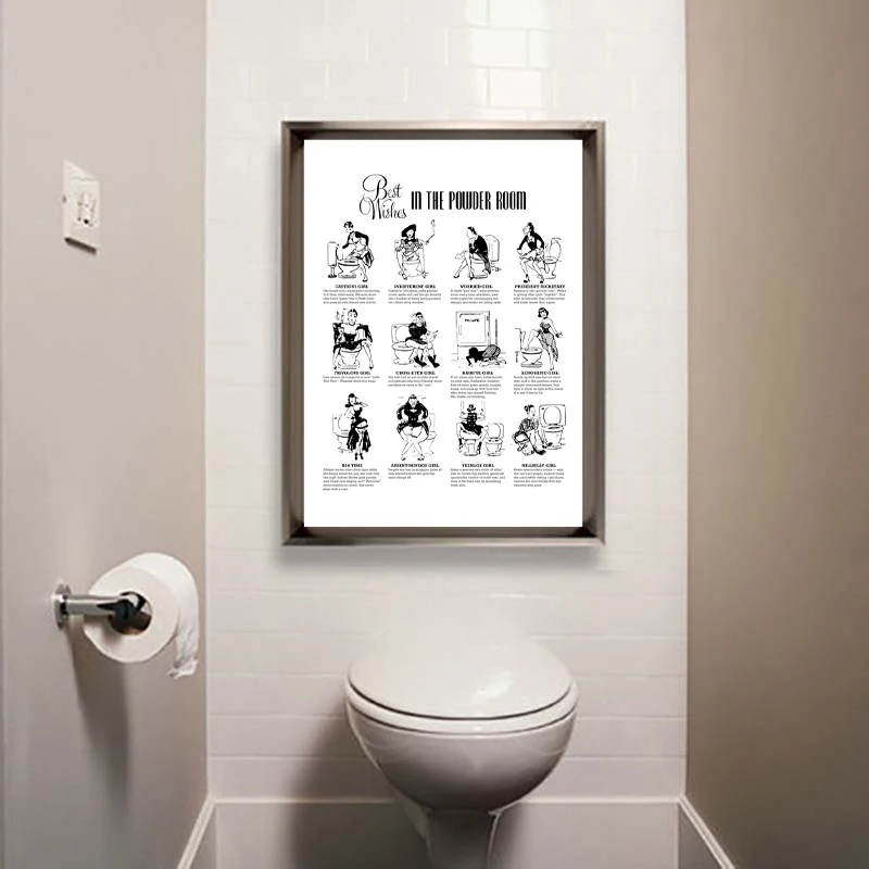 Винтажные забавные украшения для ванной комнаты в туалете Холст Кар...